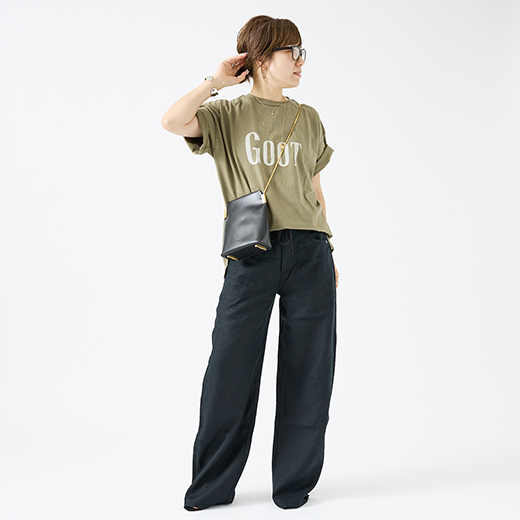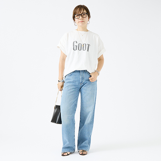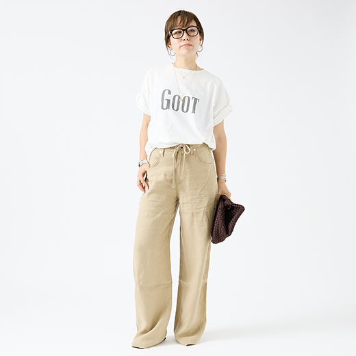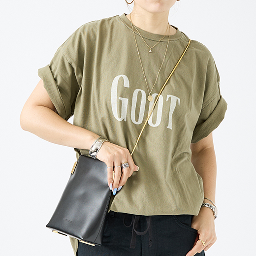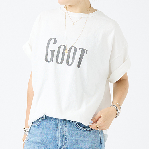 程よい肉厚感が魅力の天竺を使用した「レミレリーフ」別注Tシャツ。しっかりとした素材にオリジナルの加工を施すことで、自然な風合いと柔らかな肌触りを実現。フロントの“GOOT”プリントが程よいアクセントになり、裾に配したさりげないサイドスリットポイント。シンプルながらもひと味違う、洗練されたTシャツです。