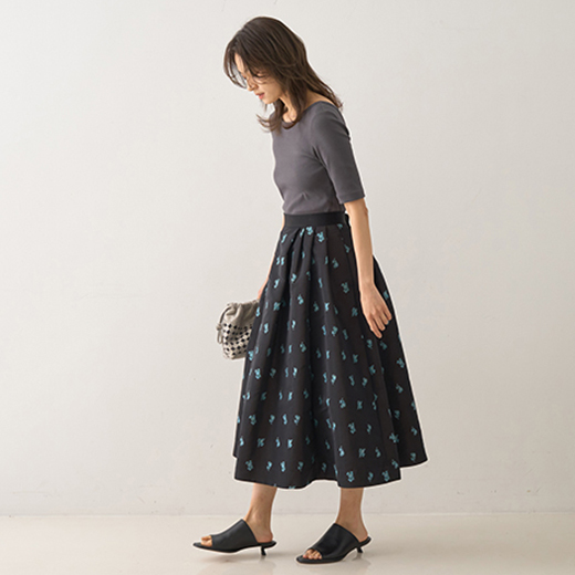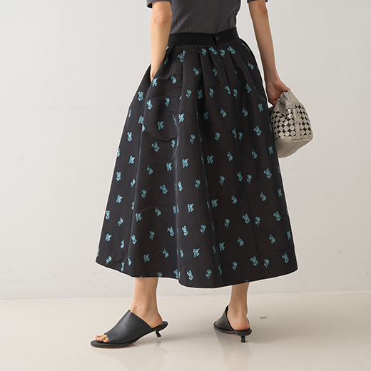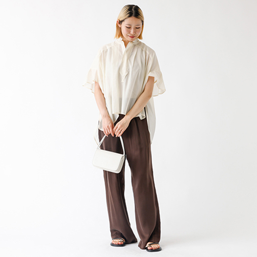 ウエストまわりにたっぷりとタックを施すことで、ふんわりと立体的なシルエットに。動くたびに美しい表情を生み出します。コンパクトなトップスやシャープなシャツとも好相性で、きれいめにもモードにも着まわせる万能アイテムです。