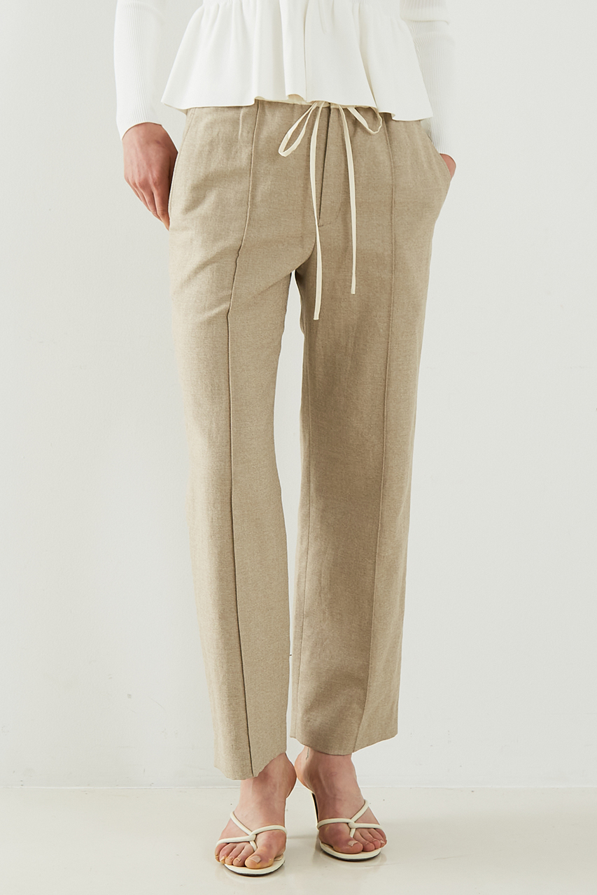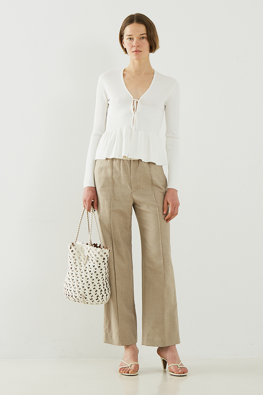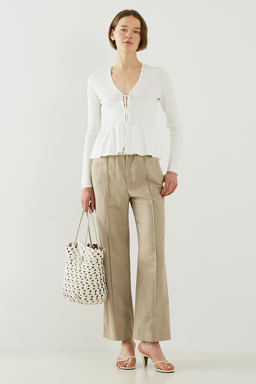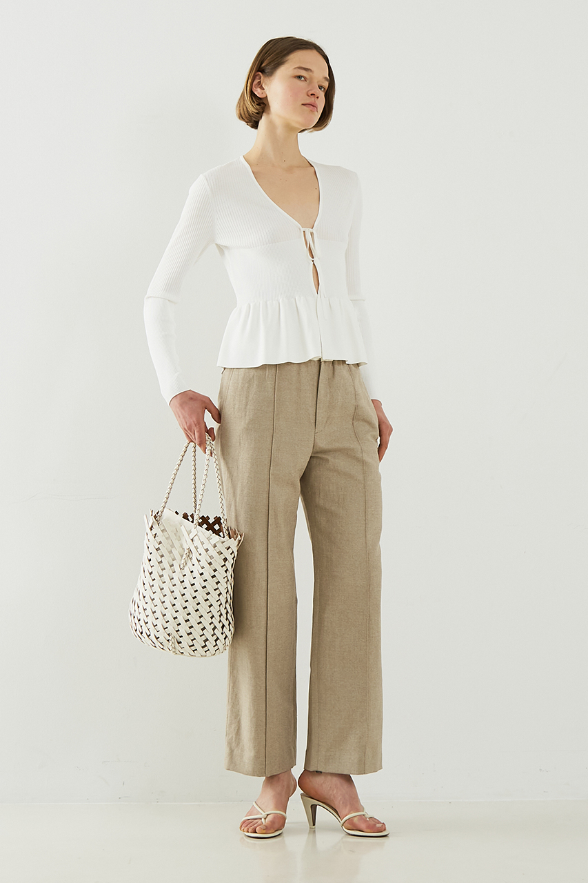 さらっとした肌触りの平織り生地を使ったセミワイドシルエットのパンツ。濃淡で色の違う糸を使用することで、上品で奥行きのある表情に仕上げました。リラックス感のあるシルエットですが、ピンタックを施すことでキレイめな印象に。デザイン性のあるトップスとも相性がよく、幅広いコーディネートが楽しめます。
