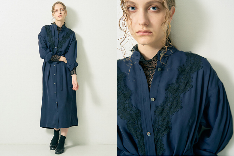 繊細なレースをあしらった大人のワンピースに、レースタートルをイン。ニュアンスのあるレイヤードが奥行きを生み、クラシカルなムードを一層引き立てます。透け感のあるディテールが重たさを感じさせず、品よく華やかな印象に仕上がるスタイリングです。