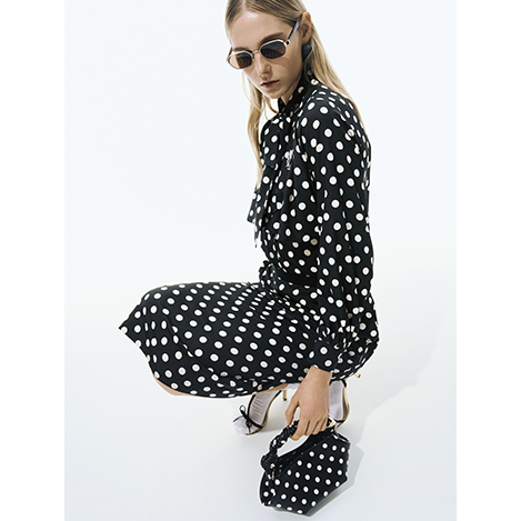 ベーシックなシャツと合わせれば、フェミニンなムードをさりげなくプラス。シンプルなトップスも、ドットアイテムを取り入れるだけでぐっと新鮮な印象に。いつもの着こなしをアップデートしてくれるアイテムです。