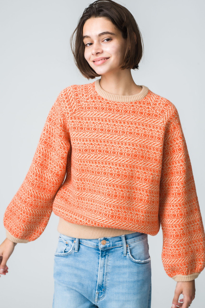 ヴィンテージのスキーセーターからインスピレーションを得たフェアアイル柄に、都会的なエッセンスをプラス。ウール100%で暖かく、ソフトな着心地が◎。丸みを持たせた袖口が女性らしさを感じさせてくれます。落ち着きがちな秋冬のファッションに華やかさを加えたいときはぜひこの1枚を。