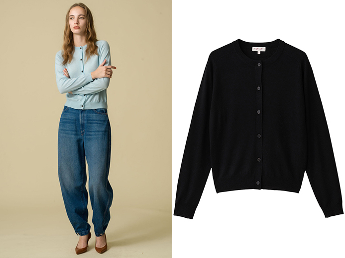 吸湿・放熱性が高く温度調節がしやすいウール100%のライトカーディガン。薄手でしなやかな肌触りが心地よく、ベーシックなシルエットでどんなスタイルにも馴染む一枚です。爽やかなブルーと、オールマイティに使えるブラックはどちらもワードローブに加えておきたい!