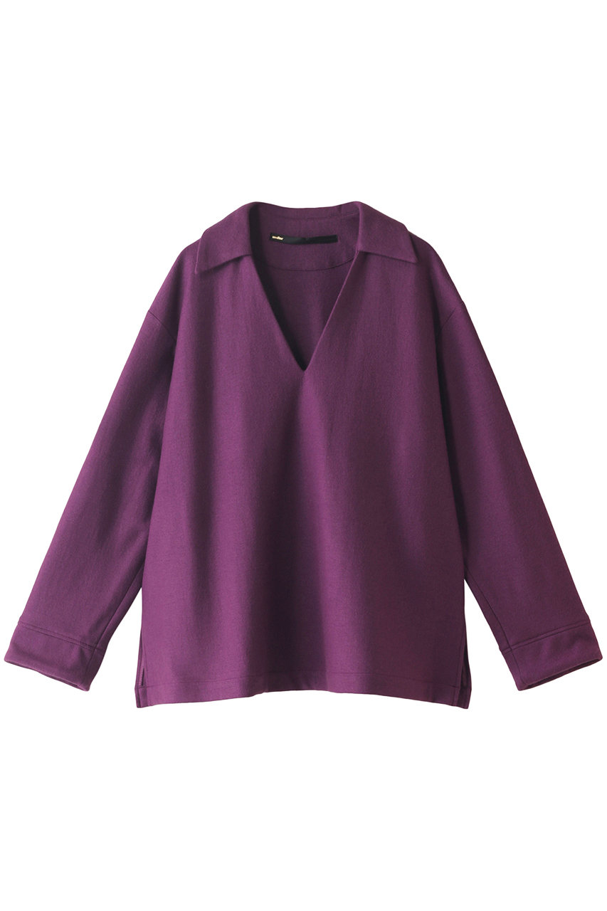 ウール100%の上質な生地を使用した着心地のよいトップスとパンツのセットアップコーディネート。襟の開き具合がすっきりとしたトップスはインナーの合わせ方で長く楽しめます。パンツは体のラインを拾いすぎないフレアシルエットとウエストゴムの楽な着心地がポイント。それぞれ他のアイテムとの相性もよい優秀アイテムです。