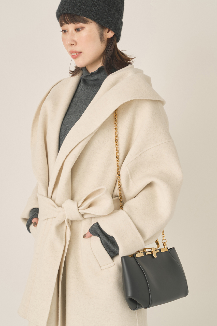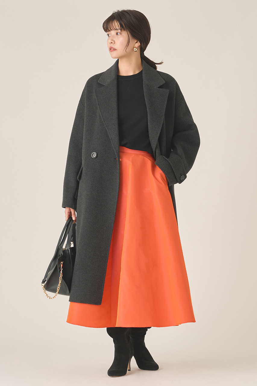 ラグラン切り替えのセミコクーンシルエットが動くたびにしなやかに揺れ、存在感を引き立てる