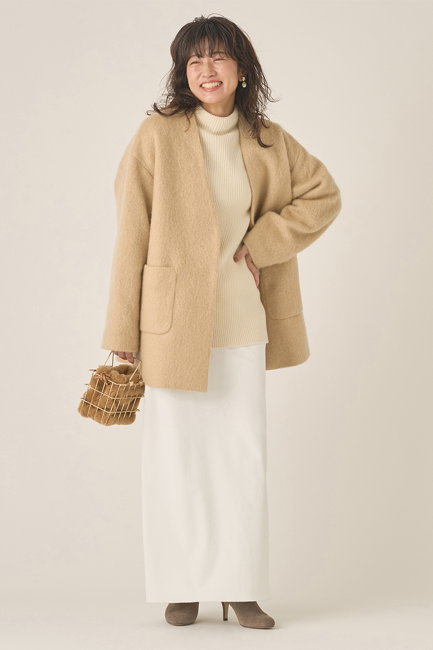 軽く温かみのあるモヘアシャギーのアウターは、秋はジャケット感覚で冬はライトコートとして活躍
