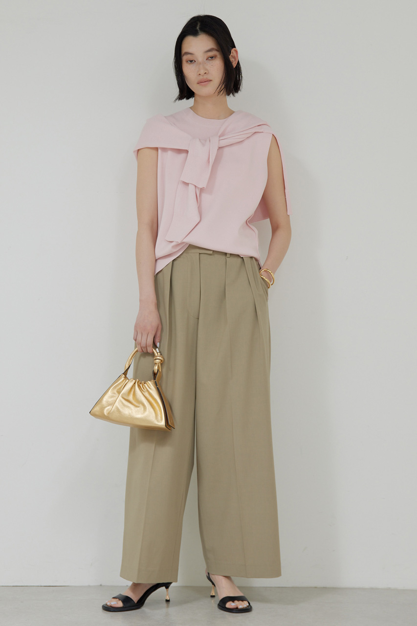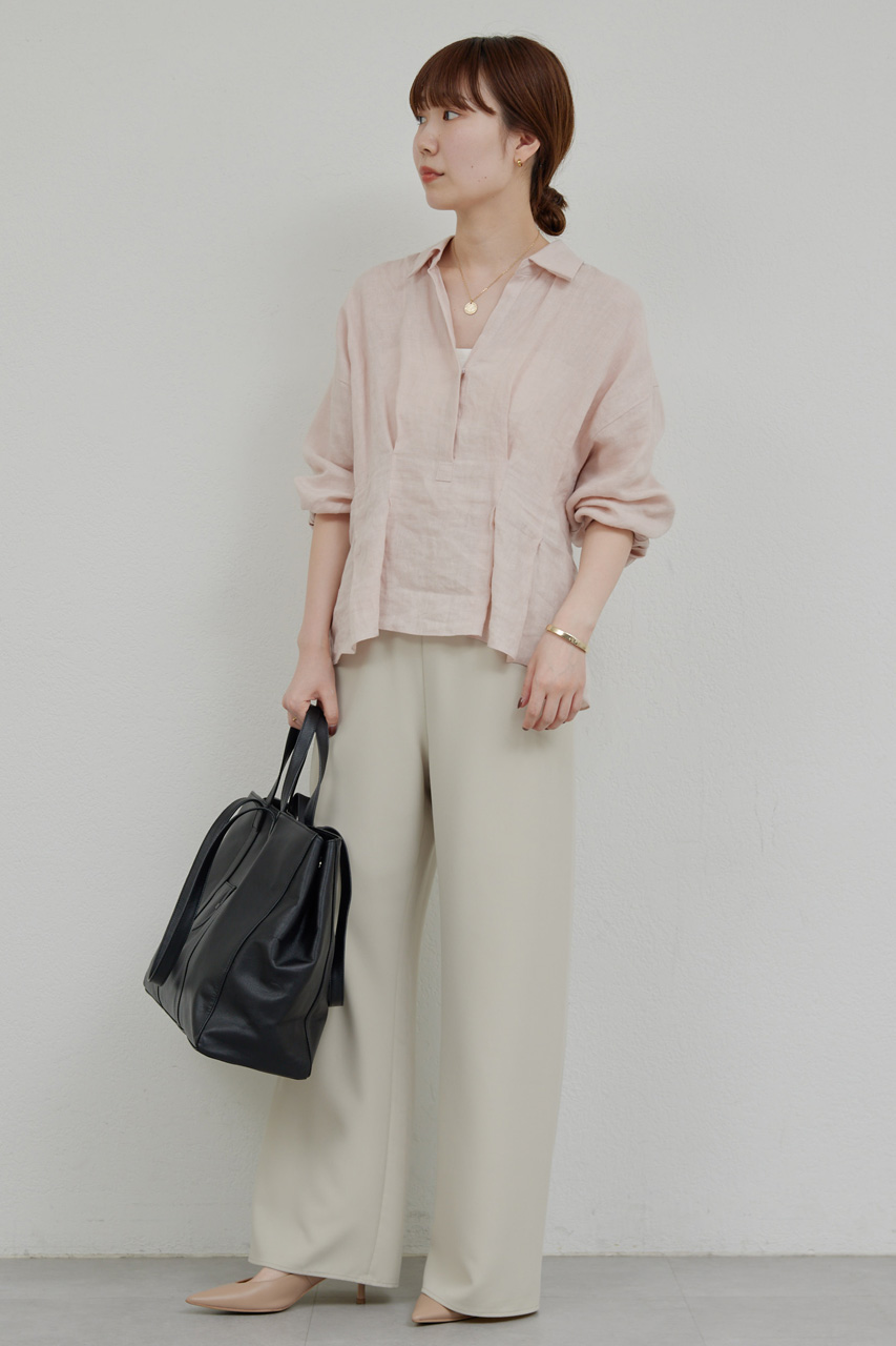 ペールトーンのピンクを取り入れて、優しげのある春らしいスタイリングに。