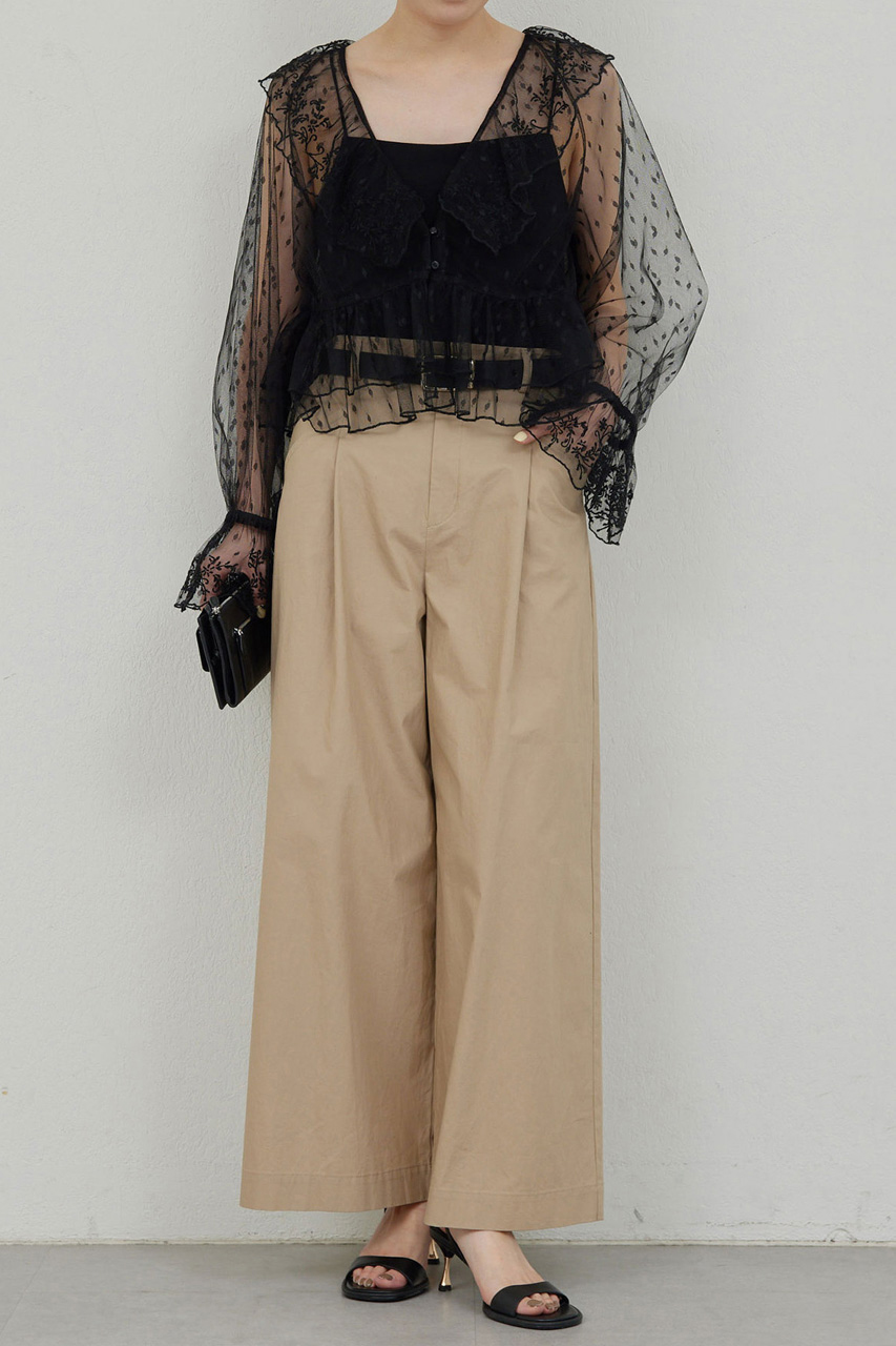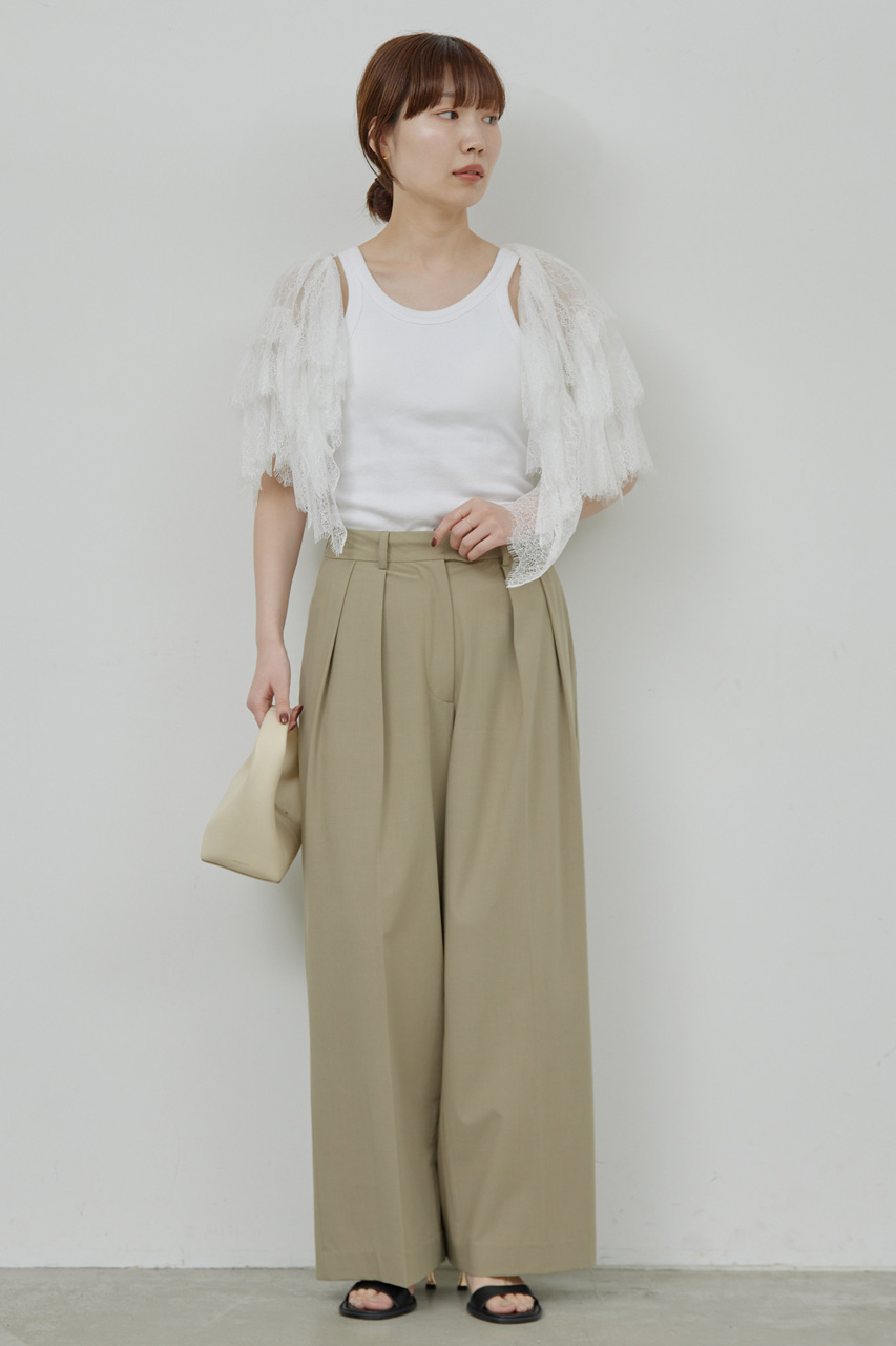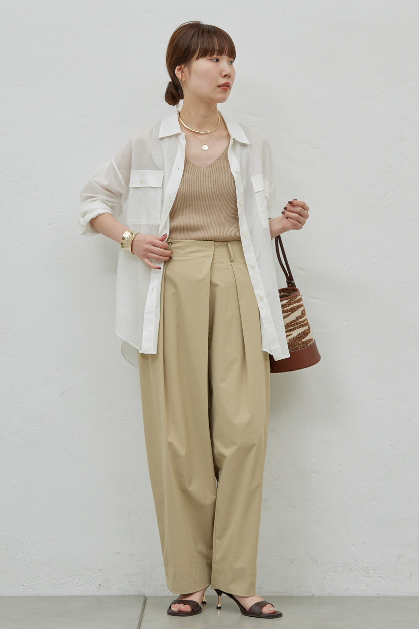 爽やかなホワイトとシアーアイテムで、抜け感のあるスタイリングに。