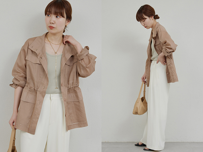 コーディネートに柔らかなニュアンスとノーブルな気品を与えてくれるベージュアイテム。