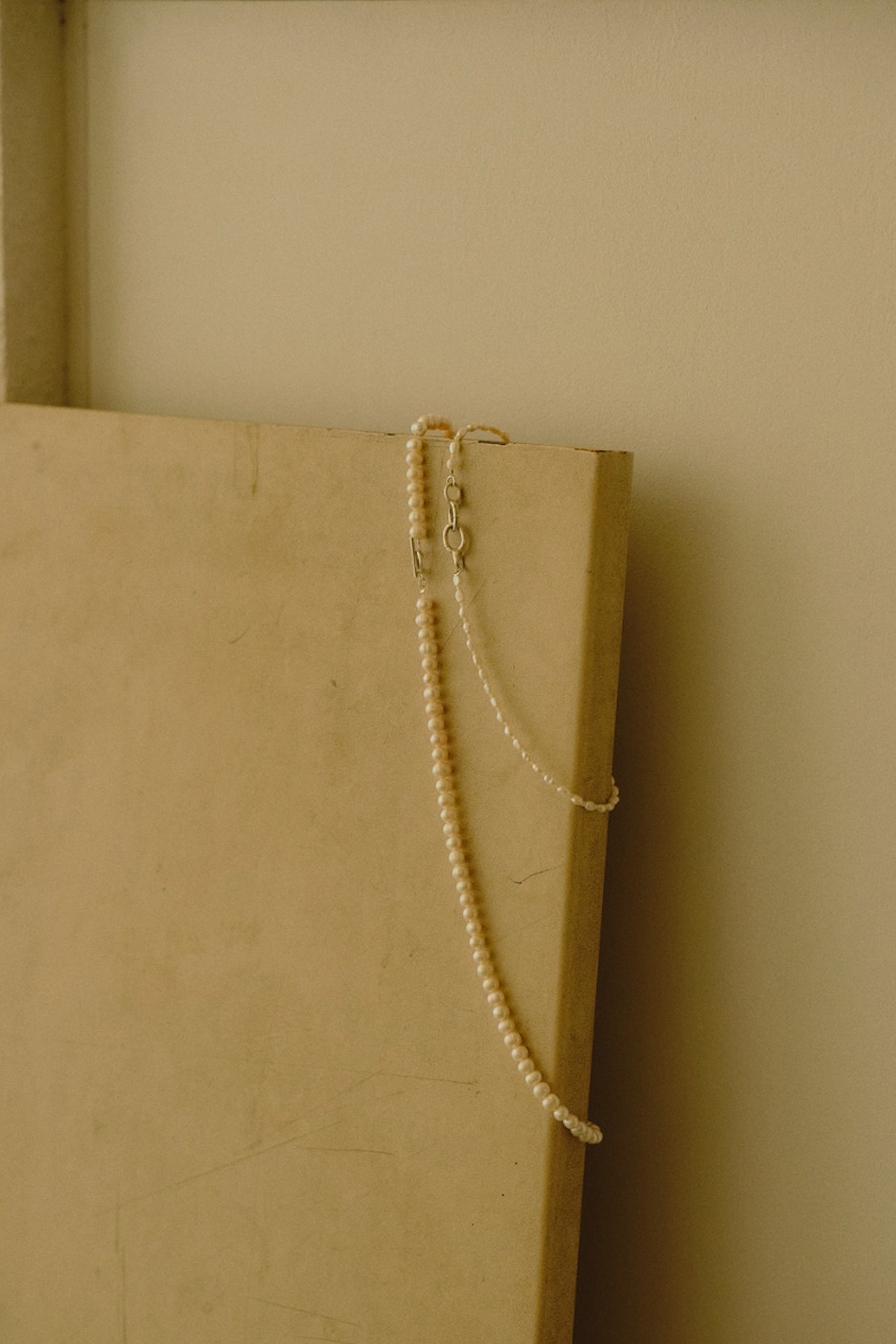 ネックレスとしても、ブレスレットとしても。有機的なフォルムのパールと繊細なチェーン。