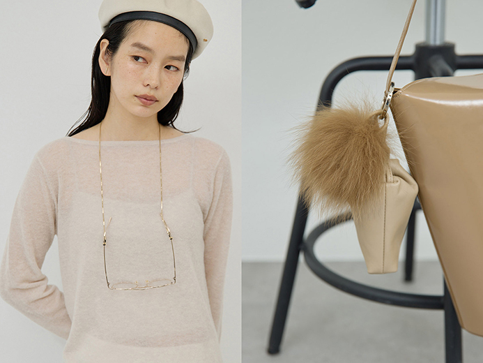 グラスネックレスや、バッグチャームなど、気分を上げるホットなアイテムも。