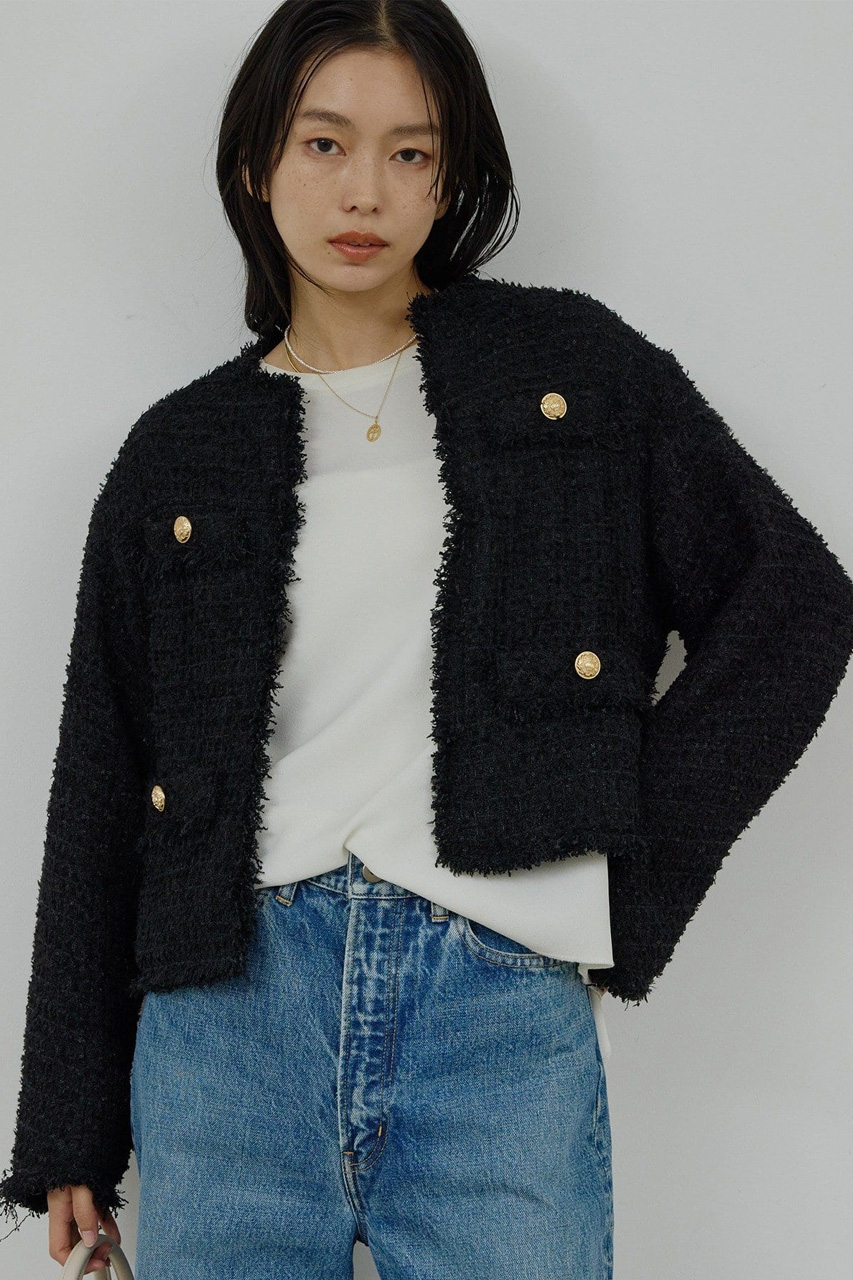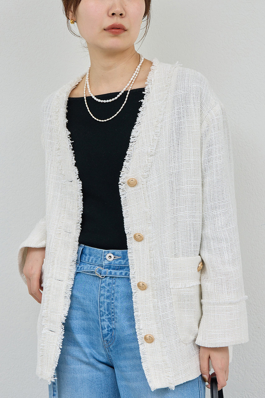 ガリャルダガランテのツイードジャケットは、肩パッドなしで柔らかい着心地。