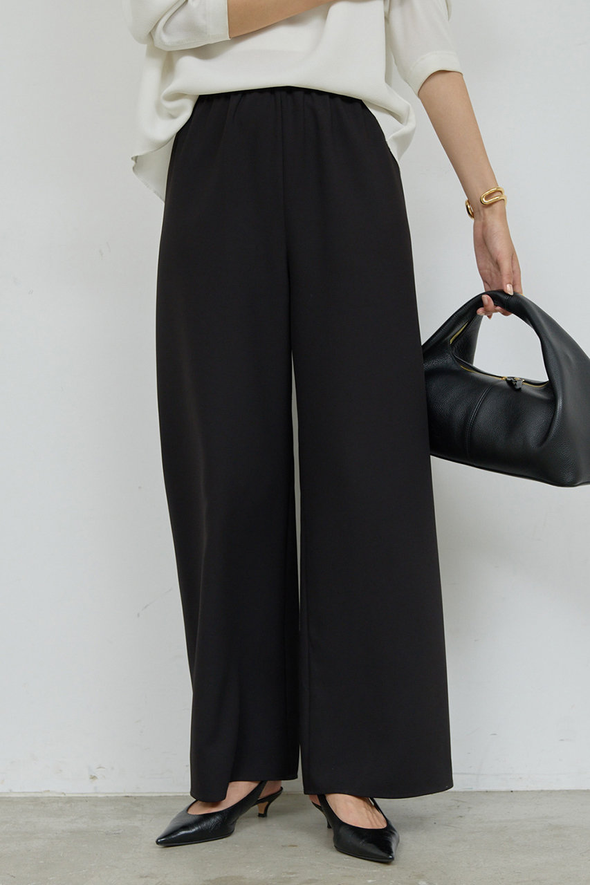 タックワイドパンツは、ウエストをタックインしてもきまる後ろゴム仕様です。