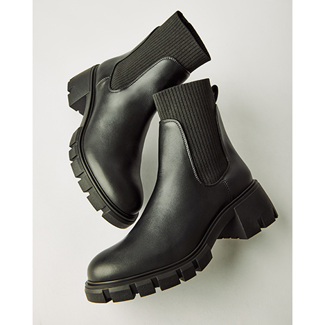 シンプルなデザインでも存在感を放つ厚底のサイドゴアブーツ。履き口がニット素材のため着脱しやすくフィット感も十分。どんなジャンルでも合わせることが出来る優秀ブーツ。スティーブ・マデンらしい目を引く厚底がスタイリングのアクセントに。