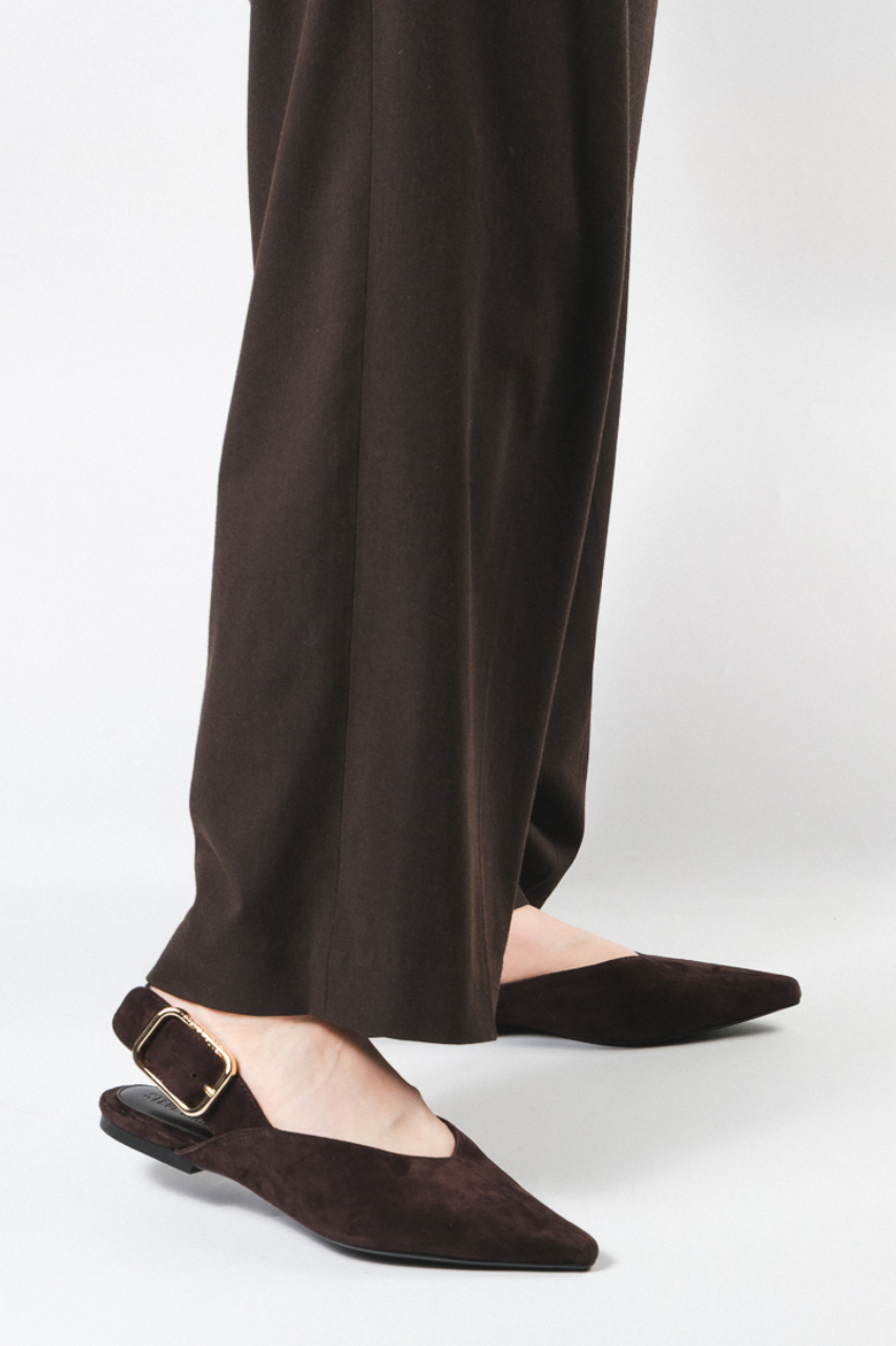 都会的なムードを漂わせるフラットシューズ《ROWYN》。足首をすっきりと