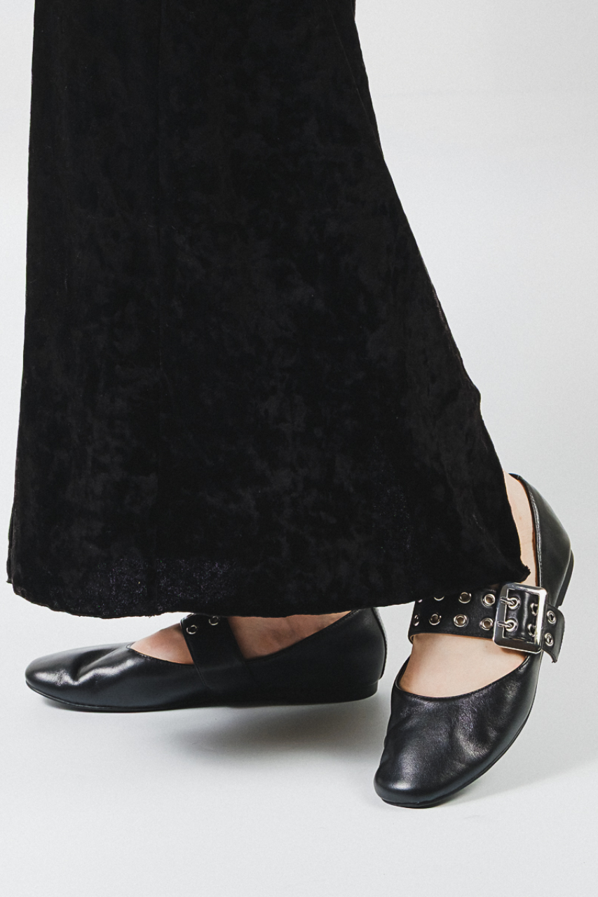 トレンドの“甘すぎない”バレエシューズをベースに、モードなムード漂う