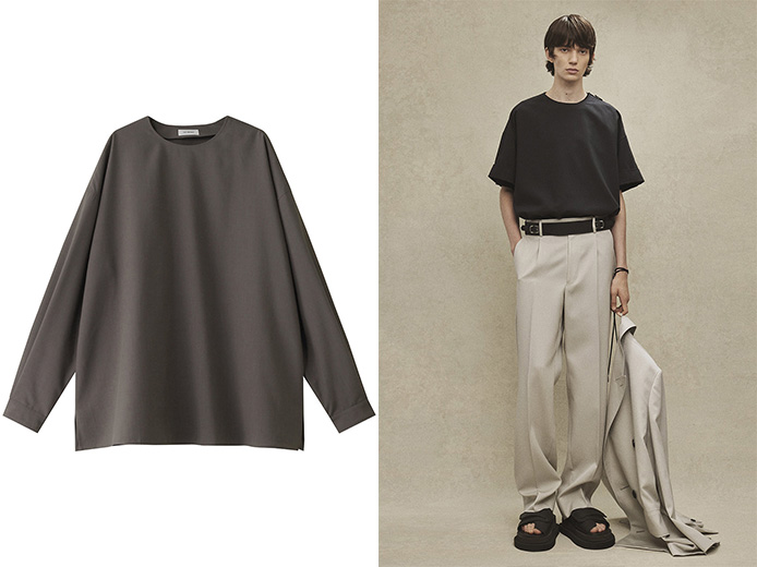 ・ドロップショルダー袖はやや長めでボリューム感を持たせ、身頃はストレートラインに。