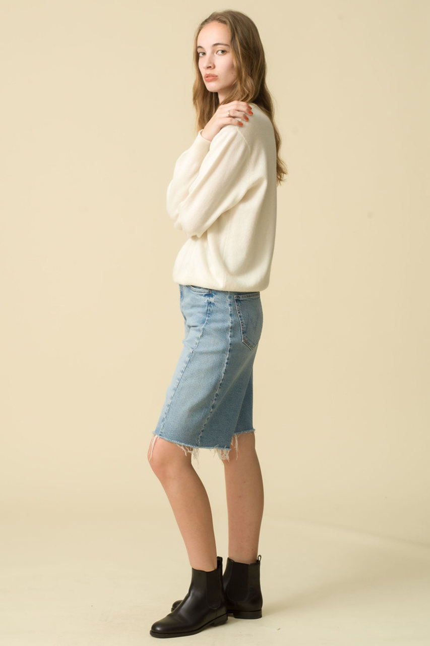 なんと秋冬シーズンの立ち上がりから継続して人気のデニムハーフパンツが第1位! トップスにふんわりとしたニット、足元にタイツ&ブーツを合わせれば12月も着まわせるトレンド感のあるスタイリングに。春夏は軽やかなトップス&サンダルと合わせてオールシーズン楽しめます。