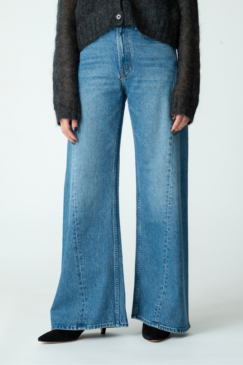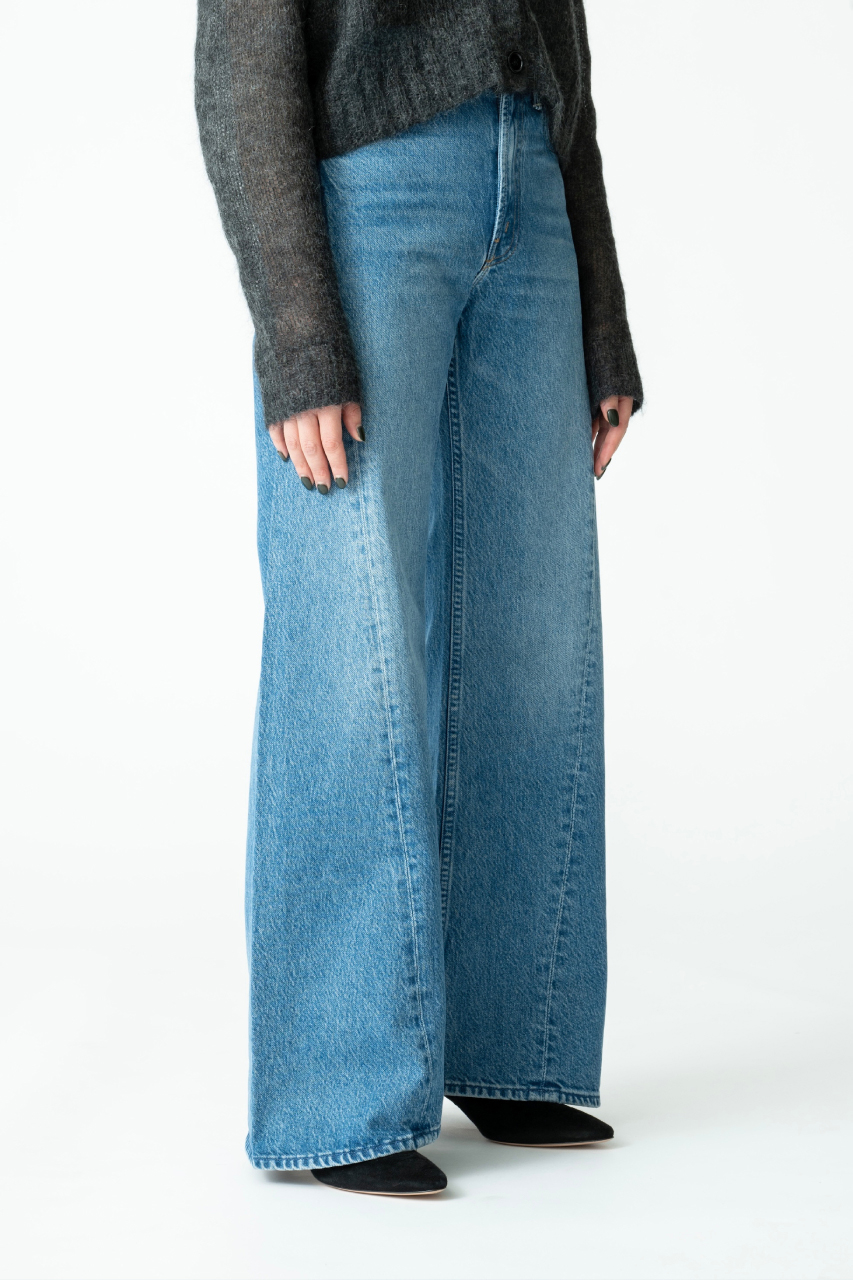 【LIL】シリーズの中でも裾の切りっぱなしが特徴のワイドデニムは、【LIL】シリーズのリピーター人気No.1! ヒップまわりはすっきりと、裾に向かって緩やかに広がるフレアラインがレッグラインを美しく見せてくれます。