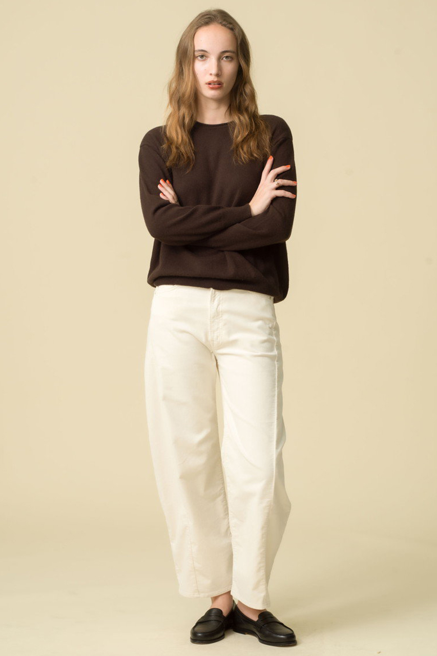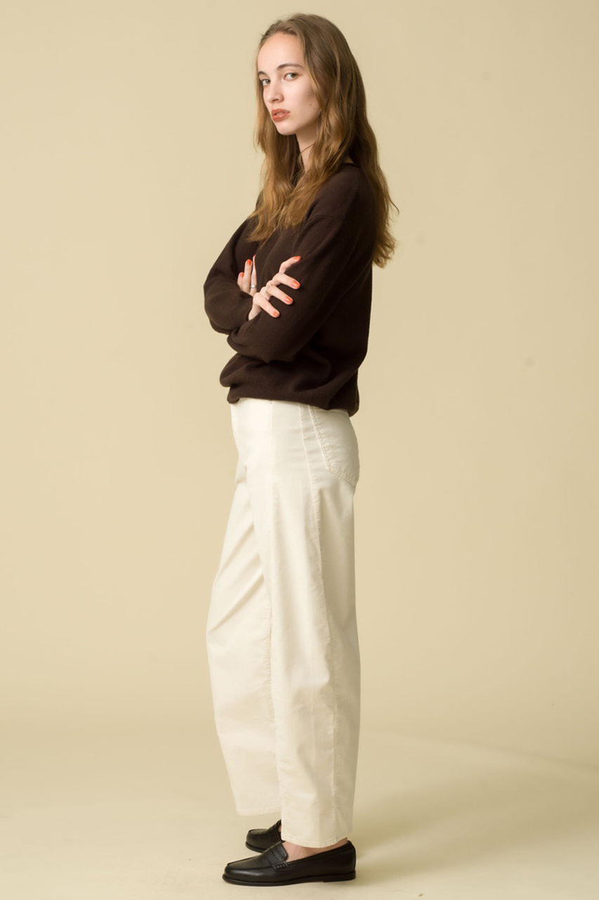 根強い人気を誇る日本別注モデルが同率3位! “LEMON TWIST SKIMP”は誰もが穿いて驚く脚長効果が人気の秘密。小柄な方でもバランス良く決まるのでご安心を。そして「マザー」では珍しいホワイトコーデュロイのカーブパンツは、今季のラインナップの中でも特に洗練された一本。柔らかな素材と立体的なシルエットが、冬のスタイリングを軽やかに引き立てます。