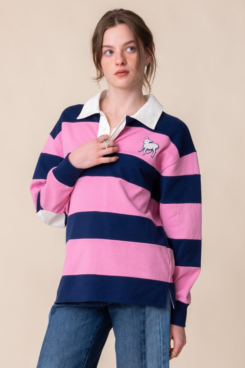 プレイフルな配色が目を引くラガーシャツは、着るだけで気分が上がる一枚。程よくゆとりのあるシルエットでリラックスしながらおしゃれが楽しめます。あえてきれいめなボトムスと合わせて甘辛ミックスするのもおすすめ。