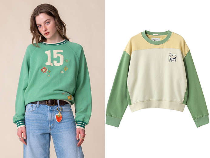 ビンテージライクな配色とグラフィックが印象的なスウェット。「マザー」ならではの、とろっとした極上のやわらか素材とリラクシングなシルエットにうっとり。いつものデニムに合わせるだけで、こなれたカジュアルスタイルが完成。