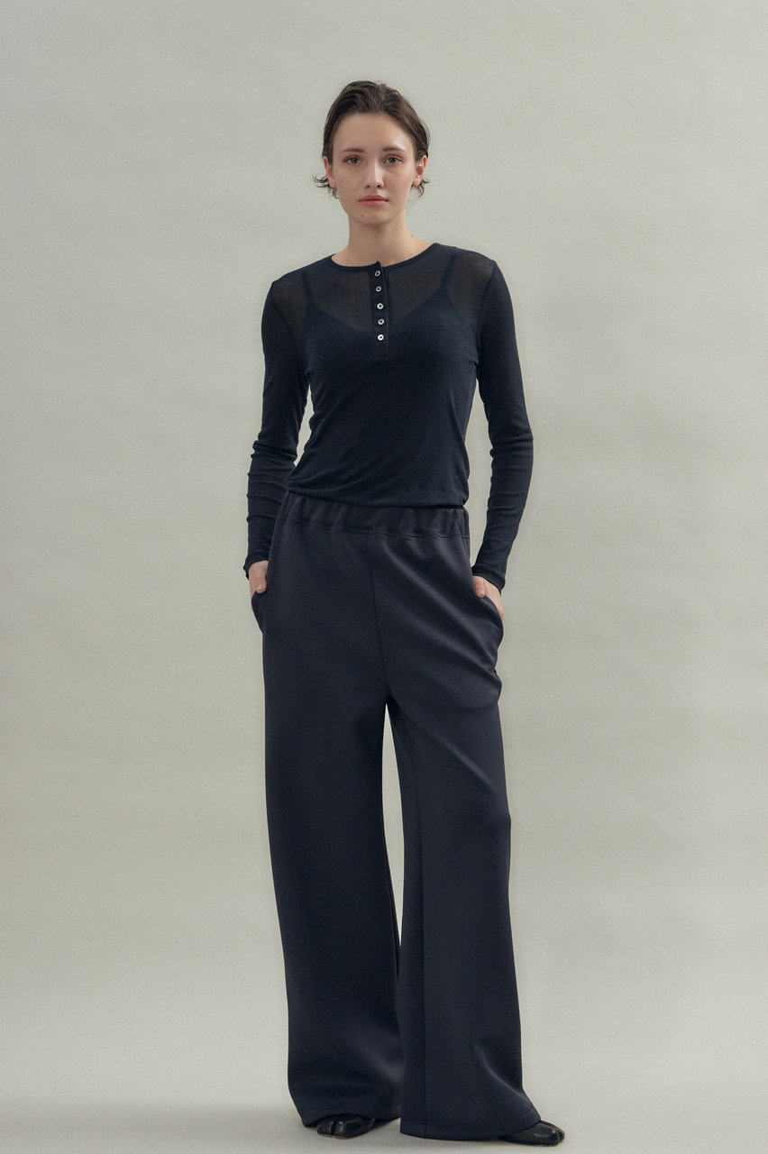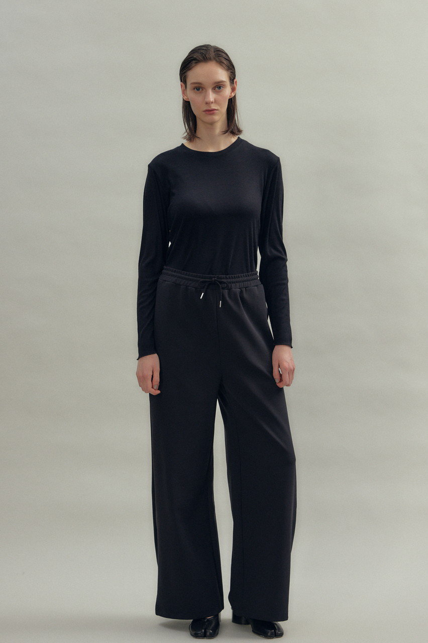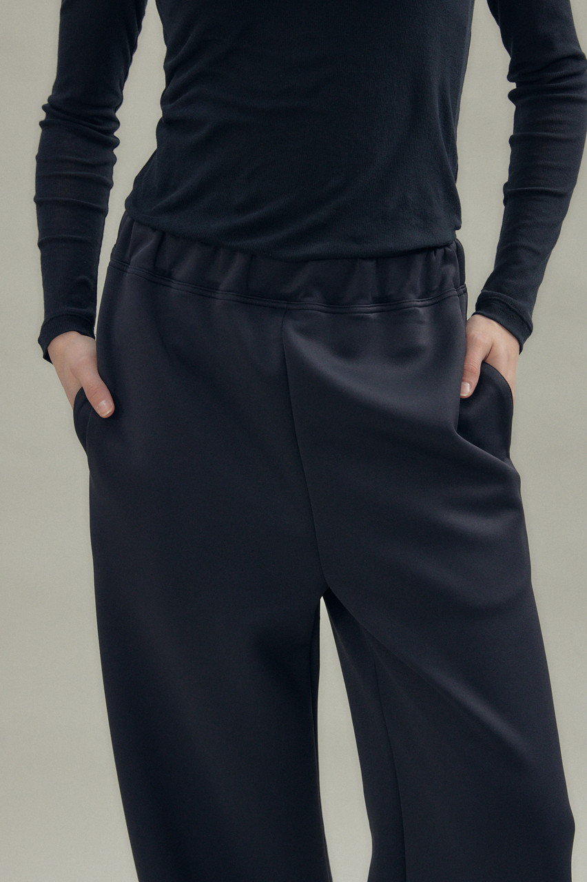 無限のストレッチ性と身体に負荷をかけない抜群の快適さを兼ね備えたワイドパンツをセレクト。膝抜けを防ぐキックバック性を保つため開発を重ねた自信作で、伸縮性にも優れており、長時間着てもストレスフリー。肌に当たる面はつるっとした編地に、クッション性を持たせるためダンボール編みにして、とことん着心地のよさにこだわっている。マシンウオッシャブルでイージーケアー性にも優れているため、オールシーズン使えて、幅広いシーンをアシスト。