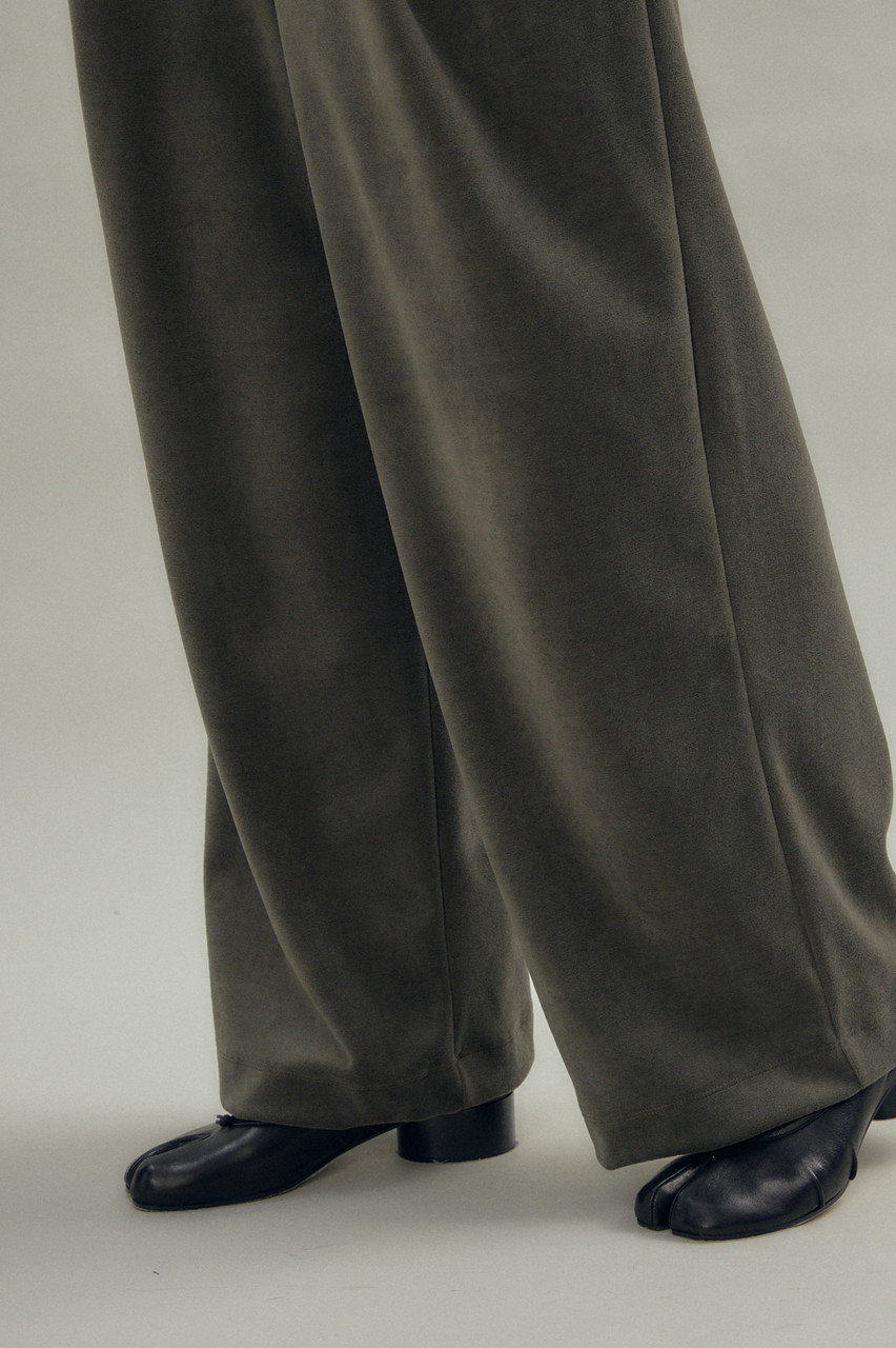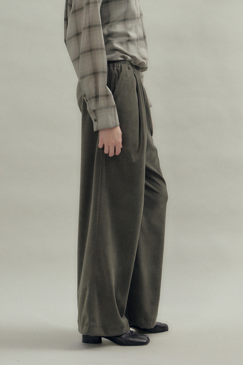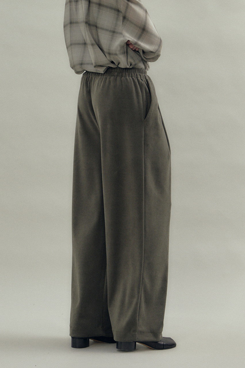 秋を先取り!リラクシーなワイドパンツをベロア素材で華やかにブラッシュアップ。パイル起毛素材特有のソフトな風合いに、裏面はポリエステルで、適度なハリ感を演出。レッグを拾わないラインとウエストゴムで、ノンストレスな着心地をゲット。いつものカジュアルコーデにエレガントなスパイスを与えてくれそう。