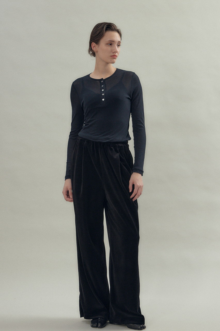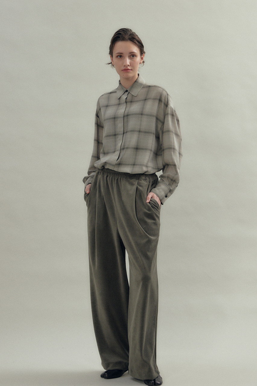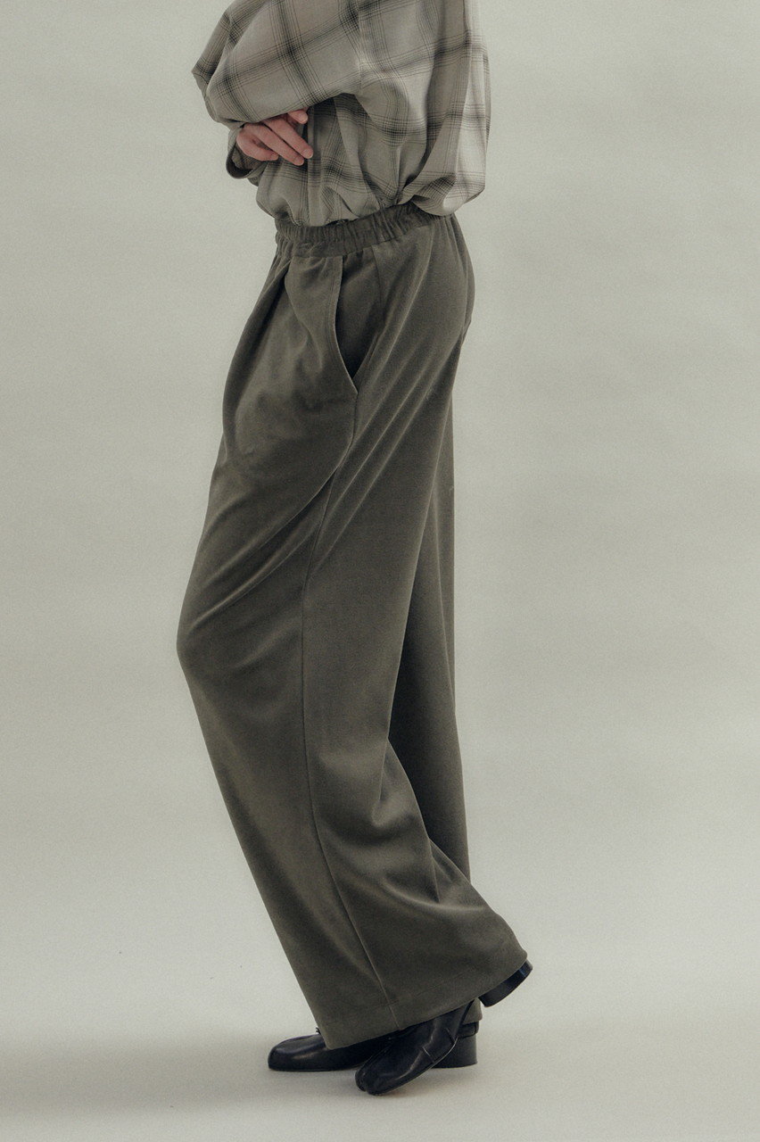 秋を先取り!リラクシーなワイドパンツをベロア素材で華やかにブラッシュアップ。パイル起毛素材特有のソフトな風合いに、裏面はポリエステルで、適度なハリ感を演出。レッグを拾わないラインとウエストゴムで、ノンストレスな着心地をゲット。いつものカジュアルコーデにエレガントなスパイスを与えてくれそう。