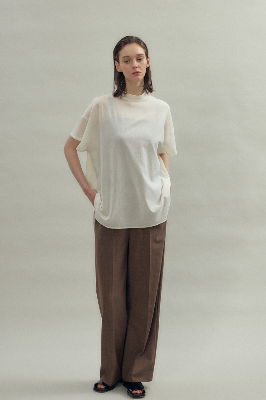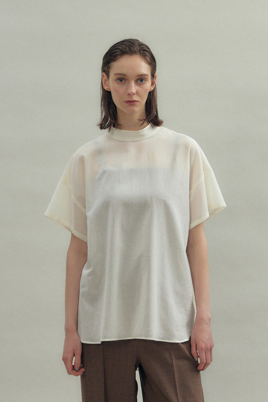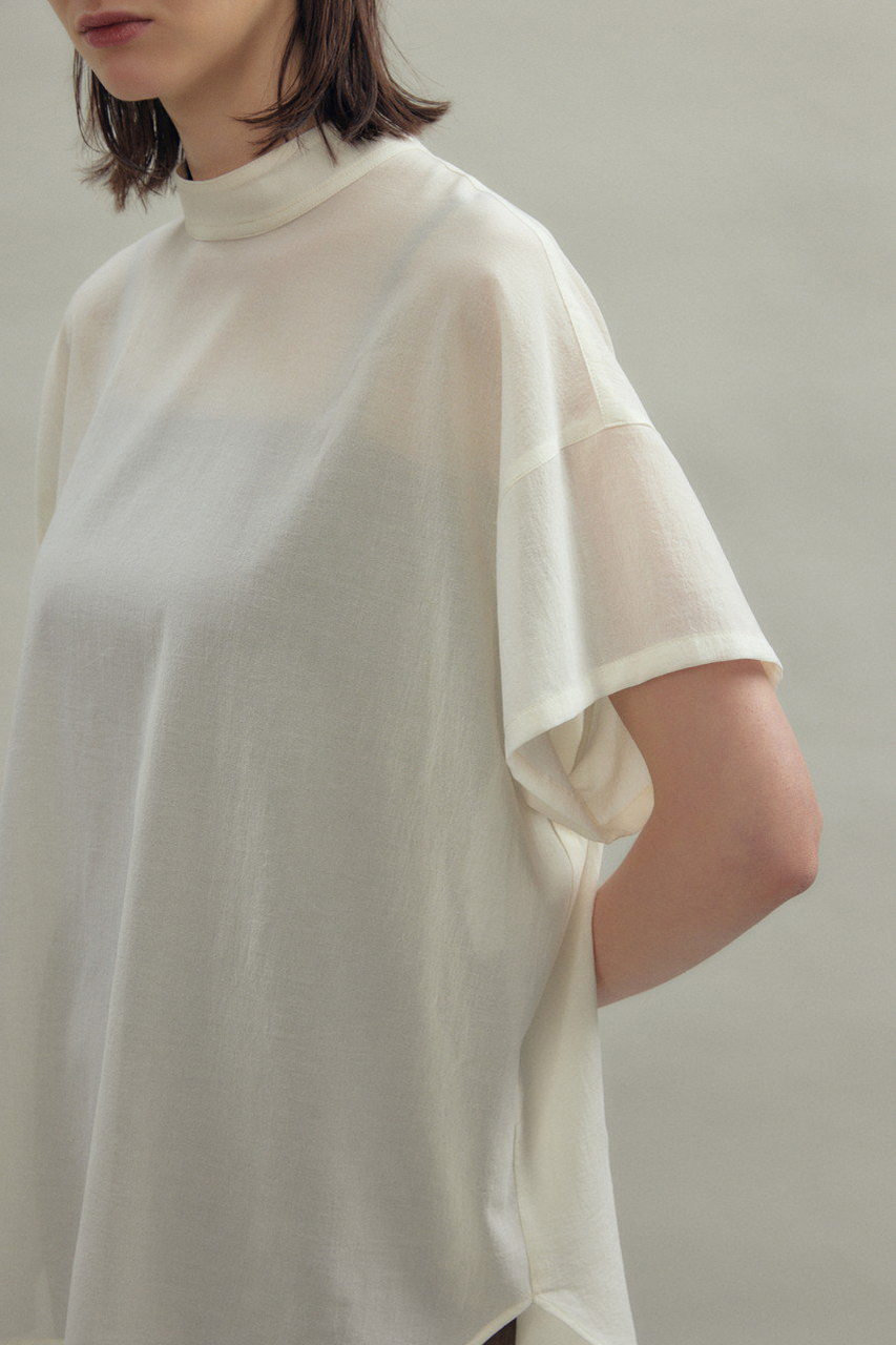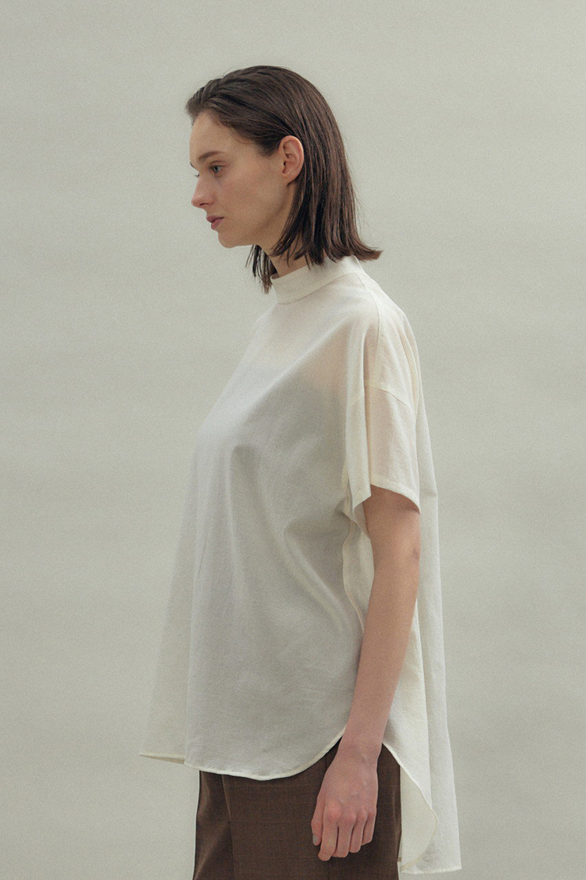 抜け感のあるオーバーシルエットとハイネックが好バランスなトップス。100/2の強撚コットンを特殊加工することにより、独特の膨らみと反発感を生み出したハイツイストボイルを採用。お尻と二の腕をカバーする着丈バランスもポイントに。糸本来の艶もあり、カジュアルながら上品に仕上げ、大人のワードローブをアシスト。