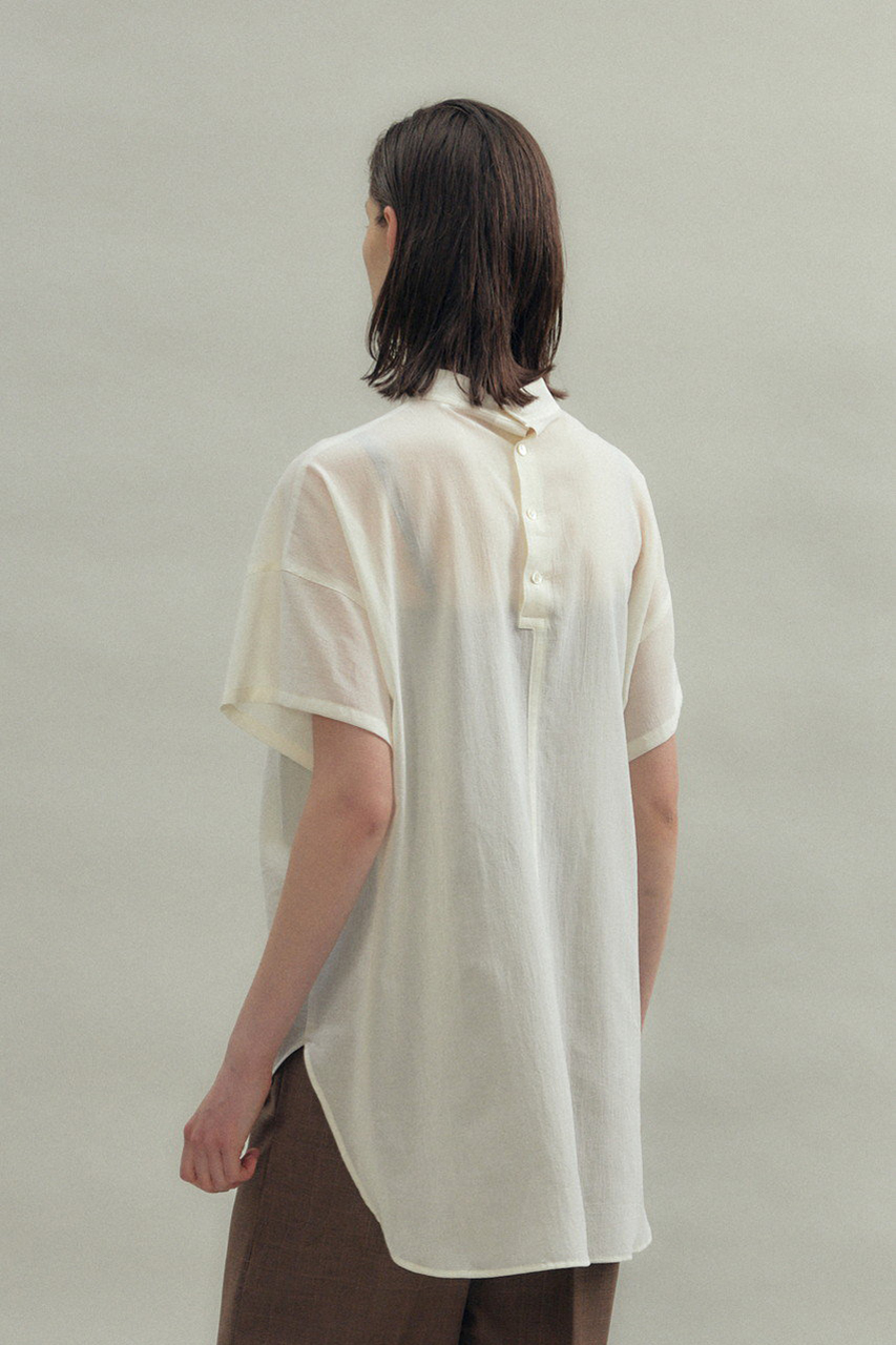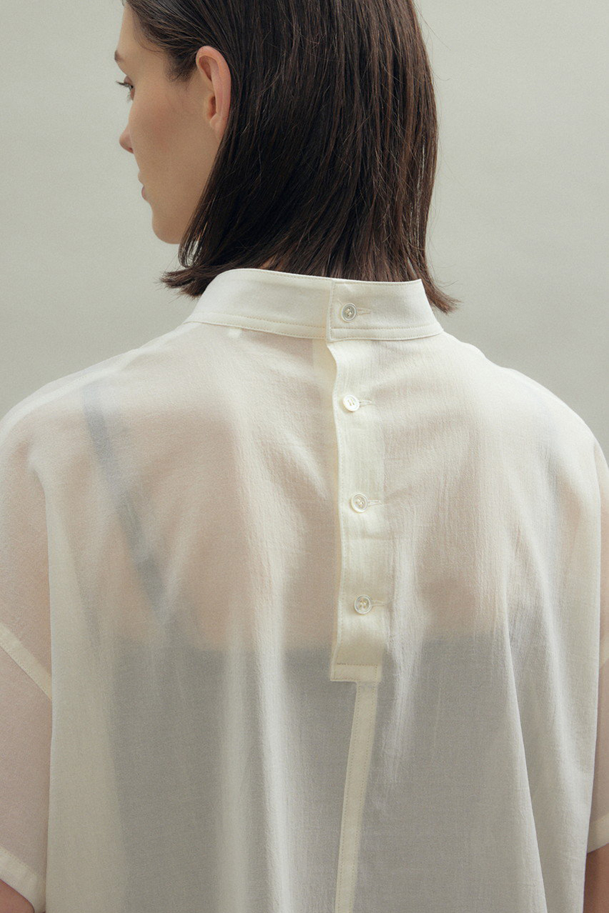 デイリーに心地よいエレガンスをもたらしてくれるバンドカラーブラウス。ウールビエラの上質な素材が生み出す、しなやかなドレープとなめらかな肌触りが手放せなくなるカギ。バンドカラーがお顔周りをすっきりと見せ、女性らしい柔らかな印象に。タウンからオフィスまでシーンを超えて活用いただける1着。