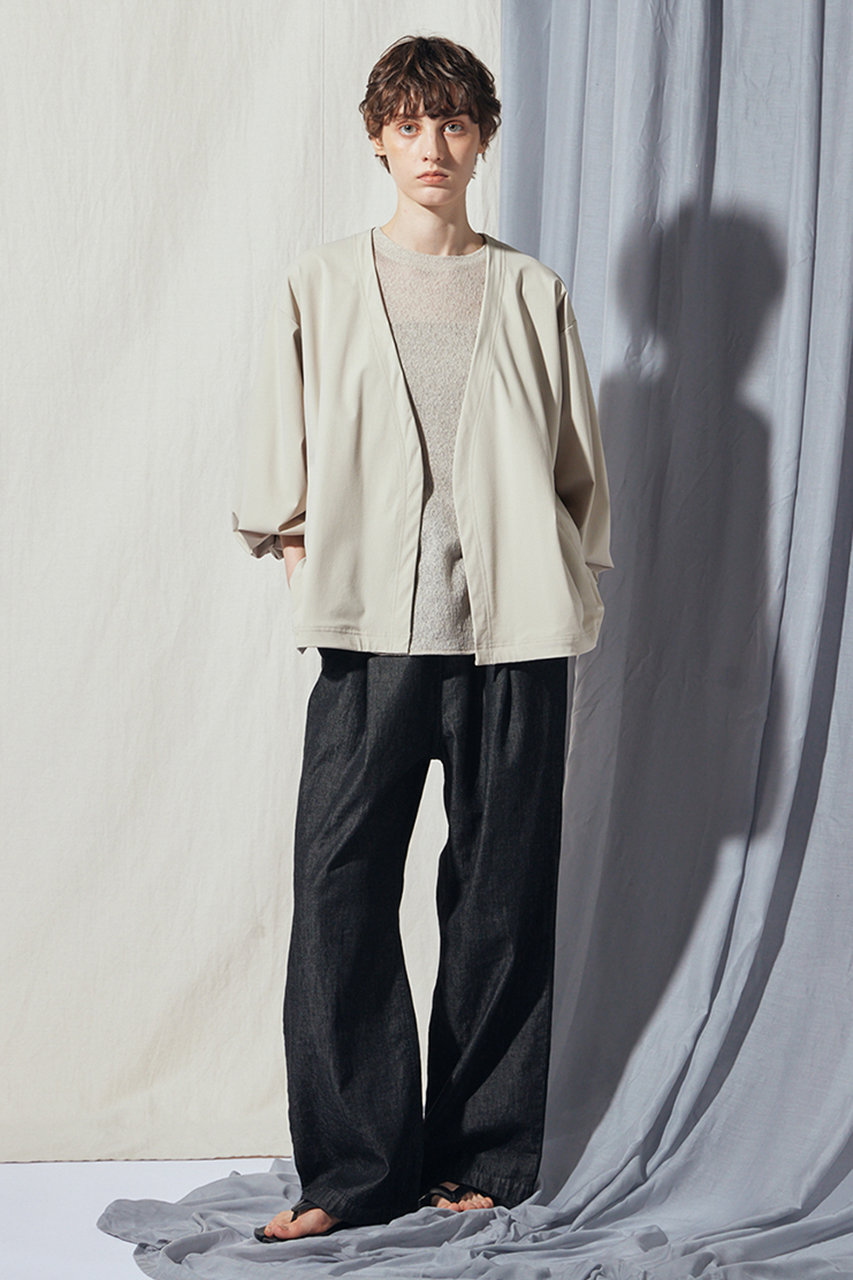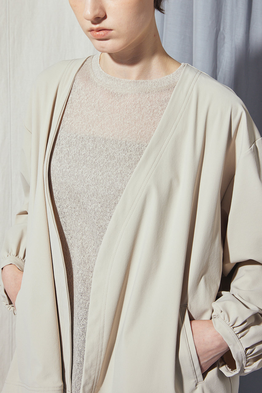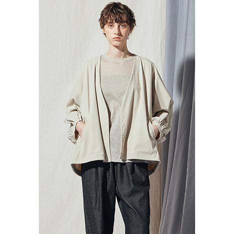 シティユースに最適な高機能ブルゾンが登場。40デニールのフルダルナイロンを用いた36ゲージのトリコット素材が、ハイストレッチで身体の動きにしなやかに寄り添いながら、接触冷感、UVカット、遮熱性という夏にうれしい機能性を兼ね備え。ミニマムなデザインと計算されたシルエットは、どんなボトムスとも好相性。