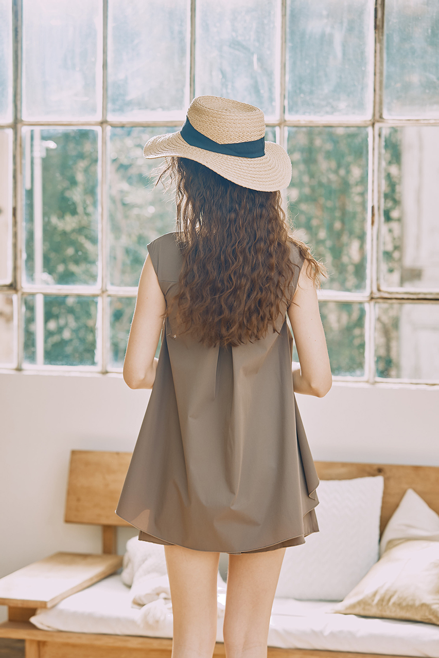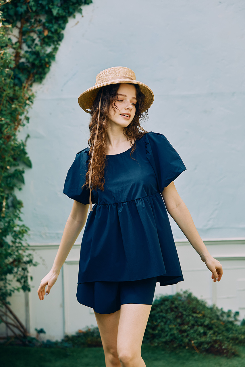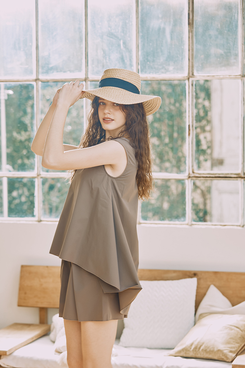 デイリーに着用できるユーティリティなセットアップ水着は、甘さをおさえたフェミニンなバランスにこだわりました。立体的なパフスリーブは二の腕を、リラックス感のあるシルエットはボディラインをおしゃれにカバーしてくれます。