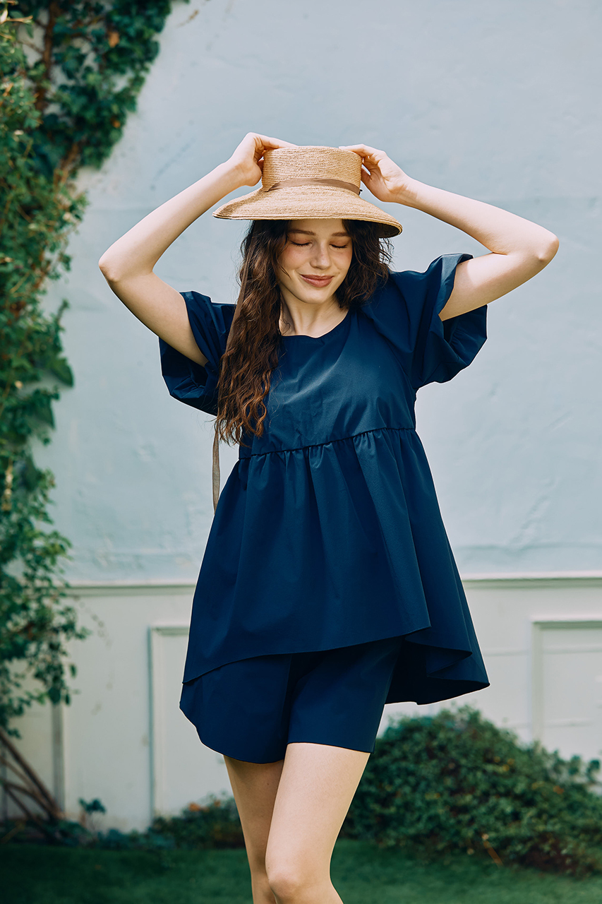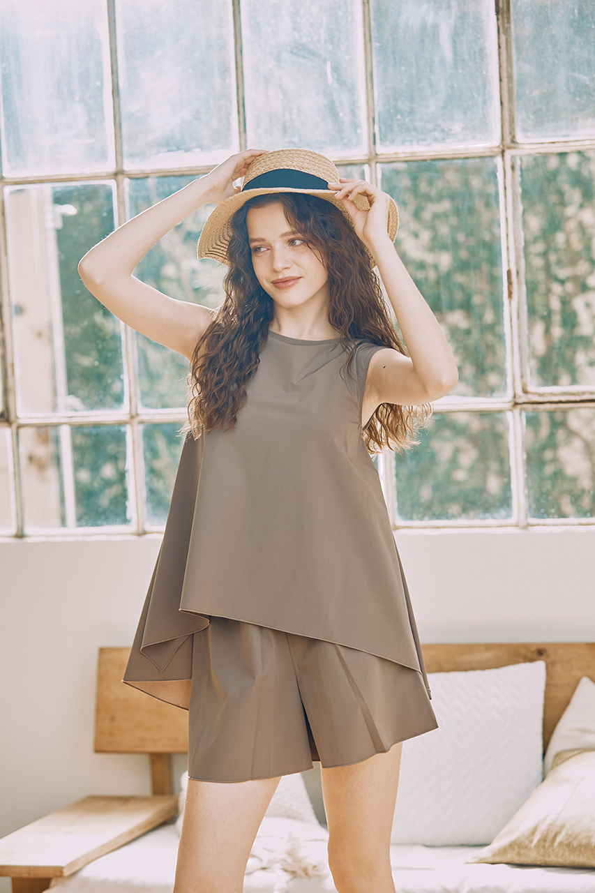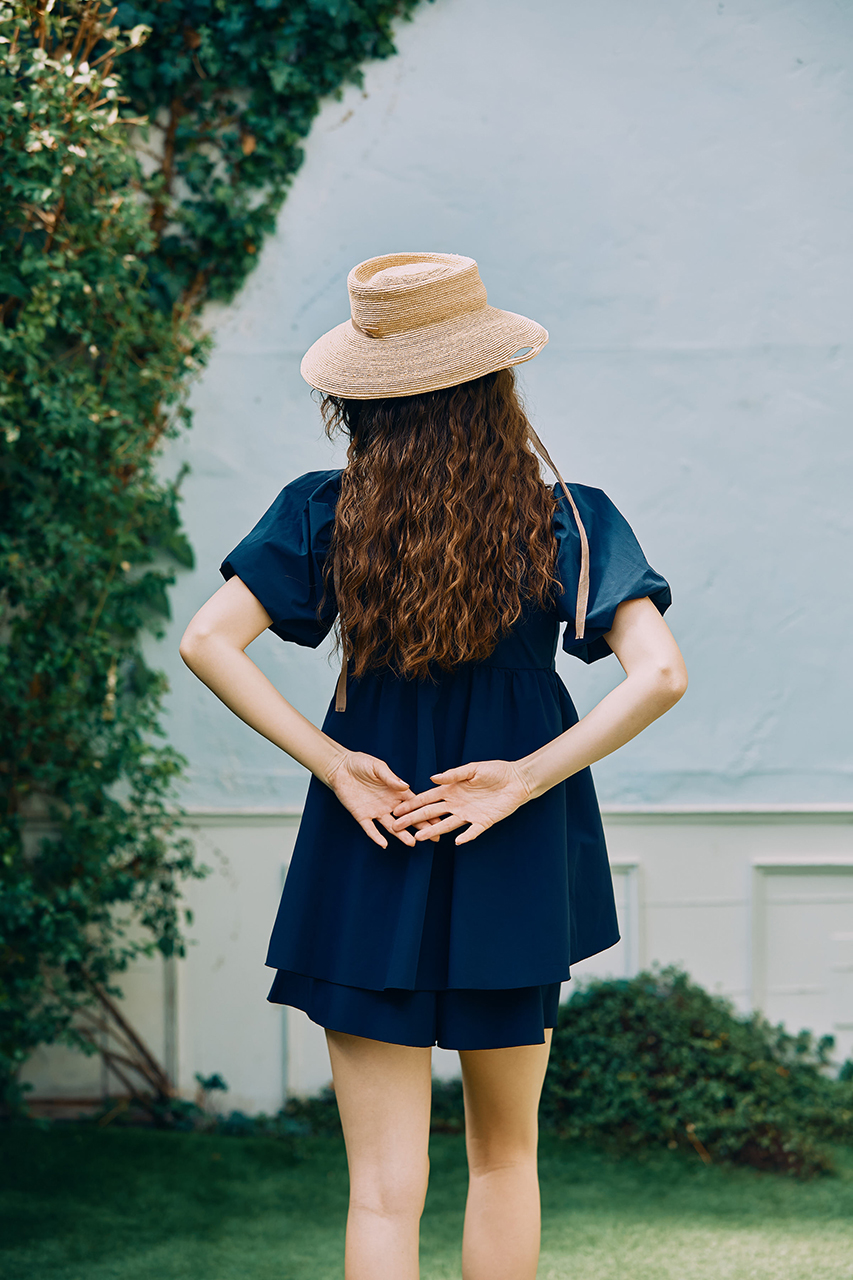 デイリーに着用できるユーティリティなセットアップ水着は、甘さをおさえたフェミニンなバランスにこだわりました。立体的なパフスリーブは二の腕を、リラックス感のあるシルエットはボディラインをおしゃれにカバーしてくれます。