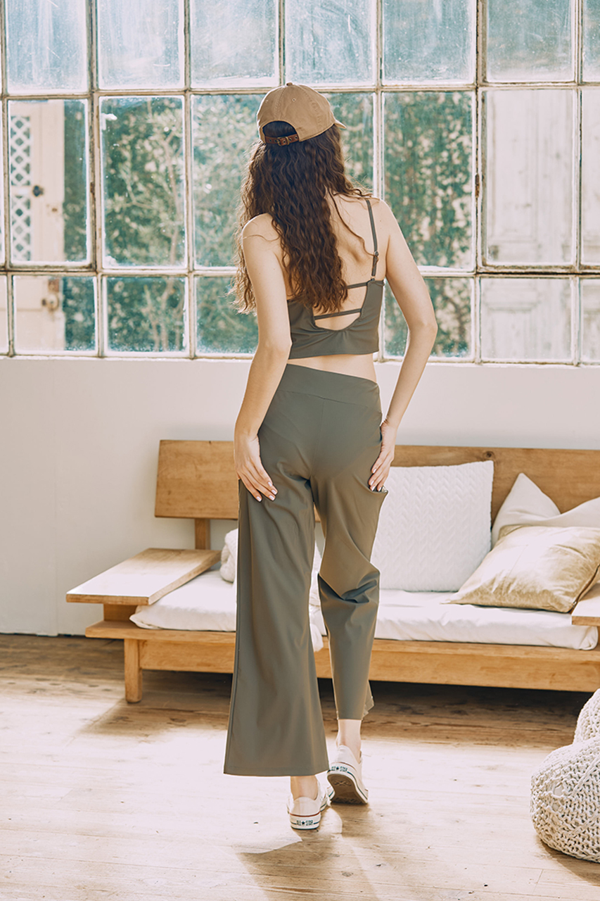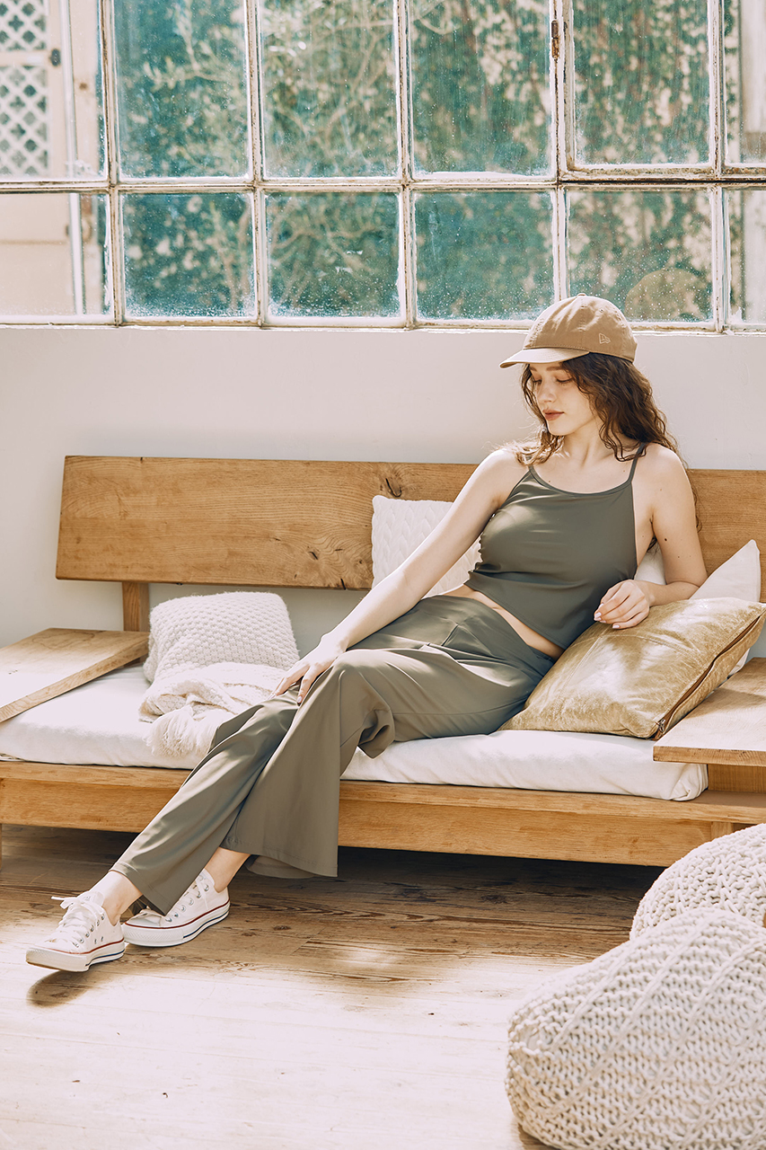 セットのパンツは程よく体にフィットしたフレアシルエットでスタイルアップが叶います。