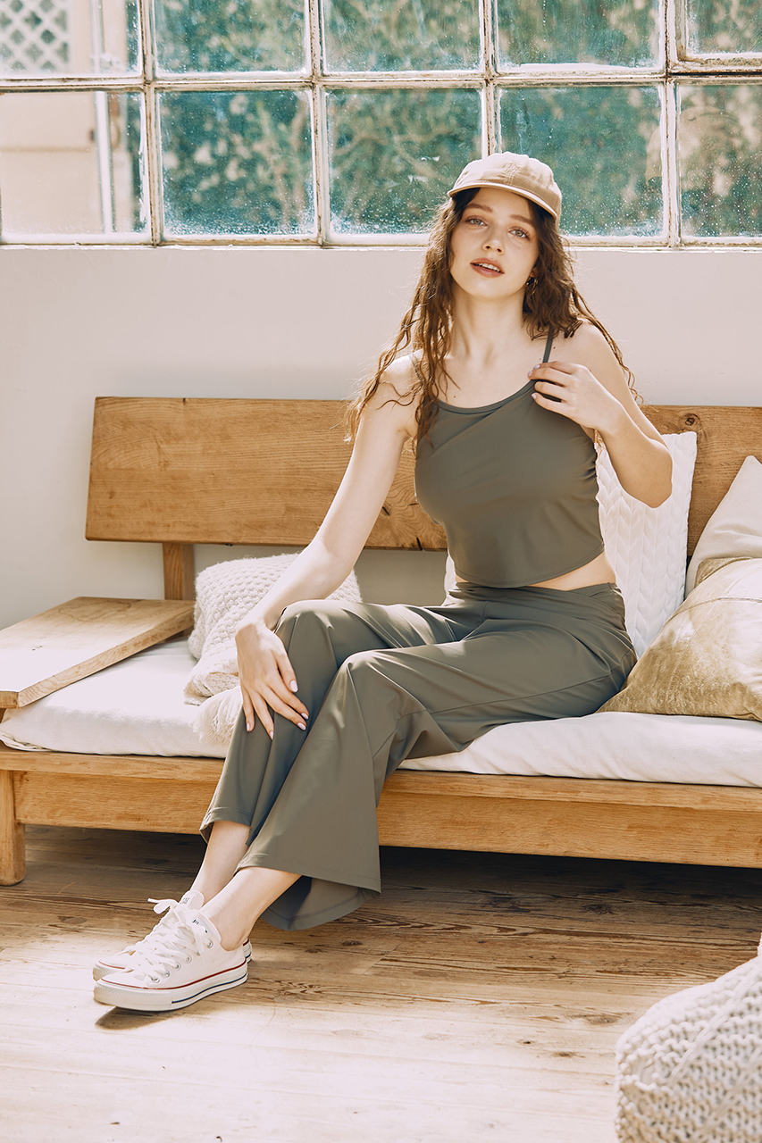 トップスは胸元がカバーできるハイネックデザイン。クロップド丈が、スタイリッシュな女性らしさと、トレンド感を演出します。ブラ内側はカップがずれにくい工夫をしてるのでインナーとして普段使いにも重宝します。