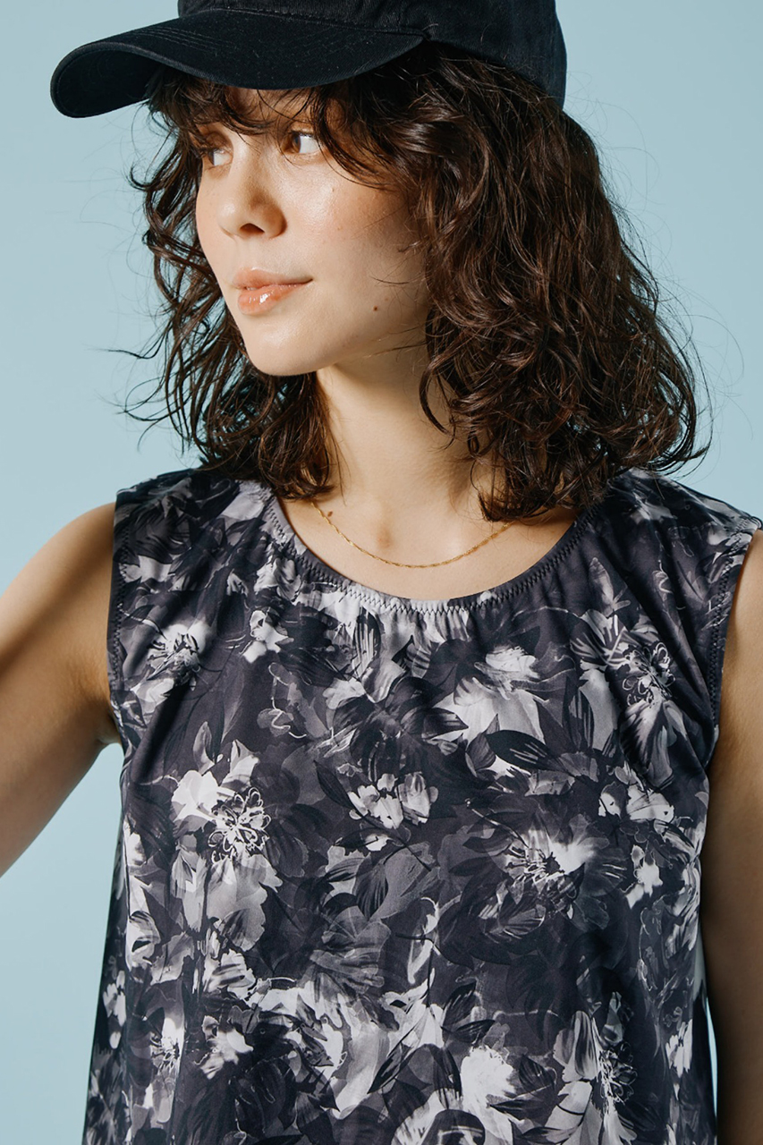 オリジナルのプリント柄は、肌なじみのよい柔らかなカラーリングがポイントです。