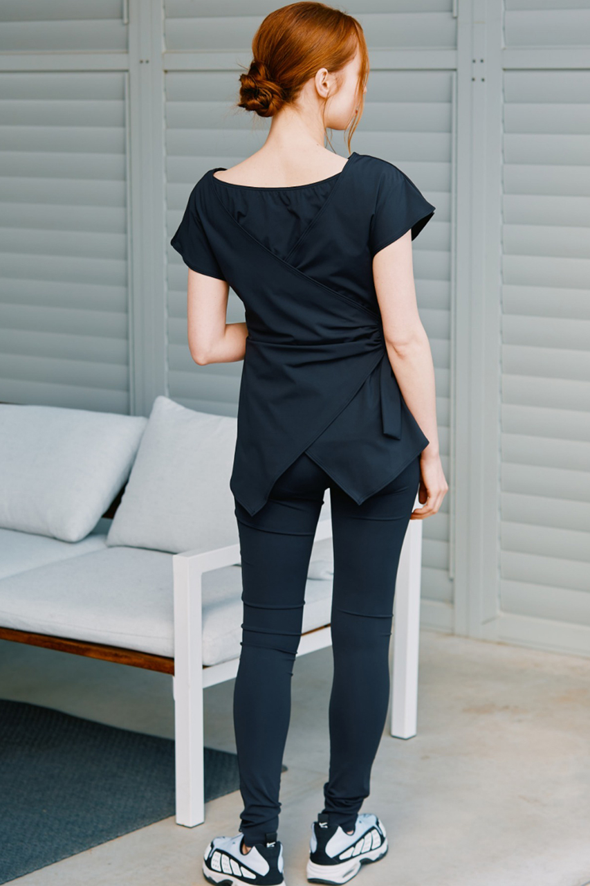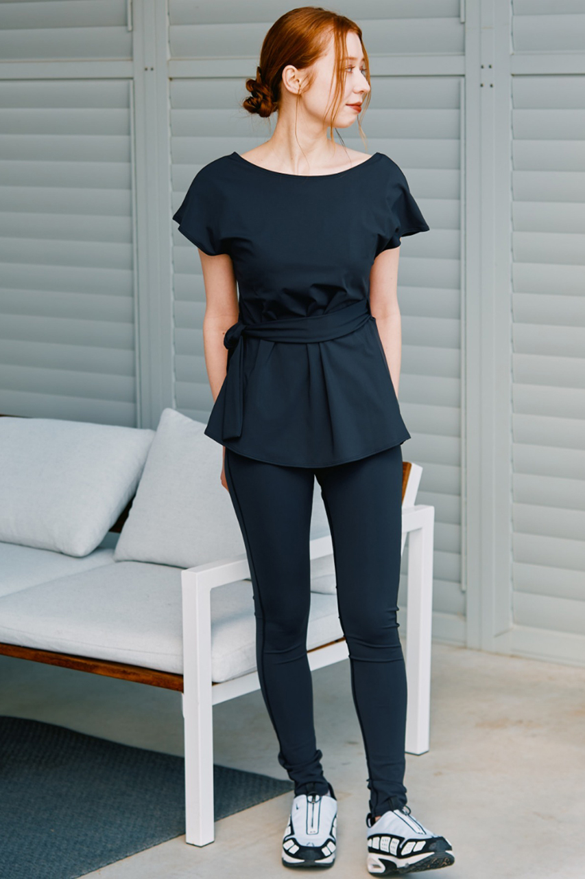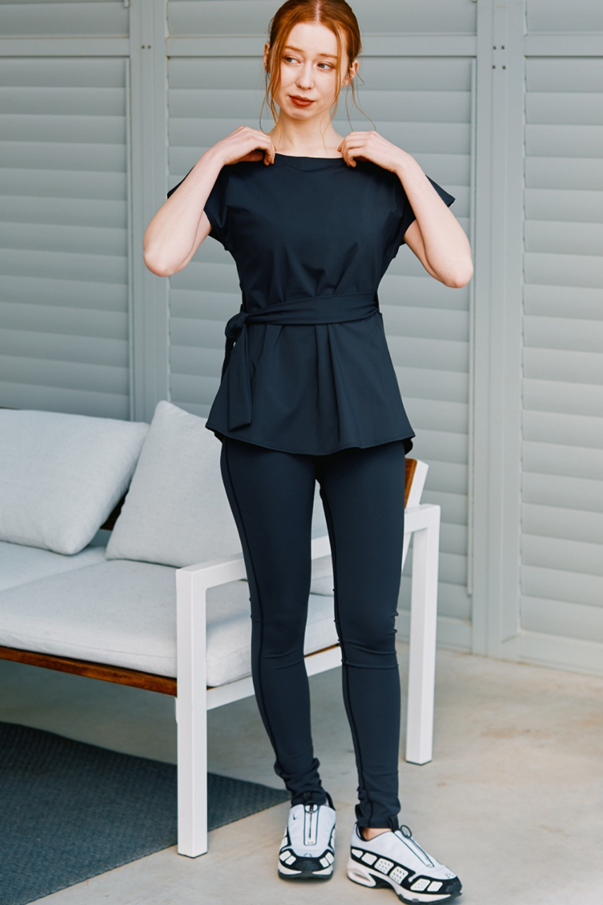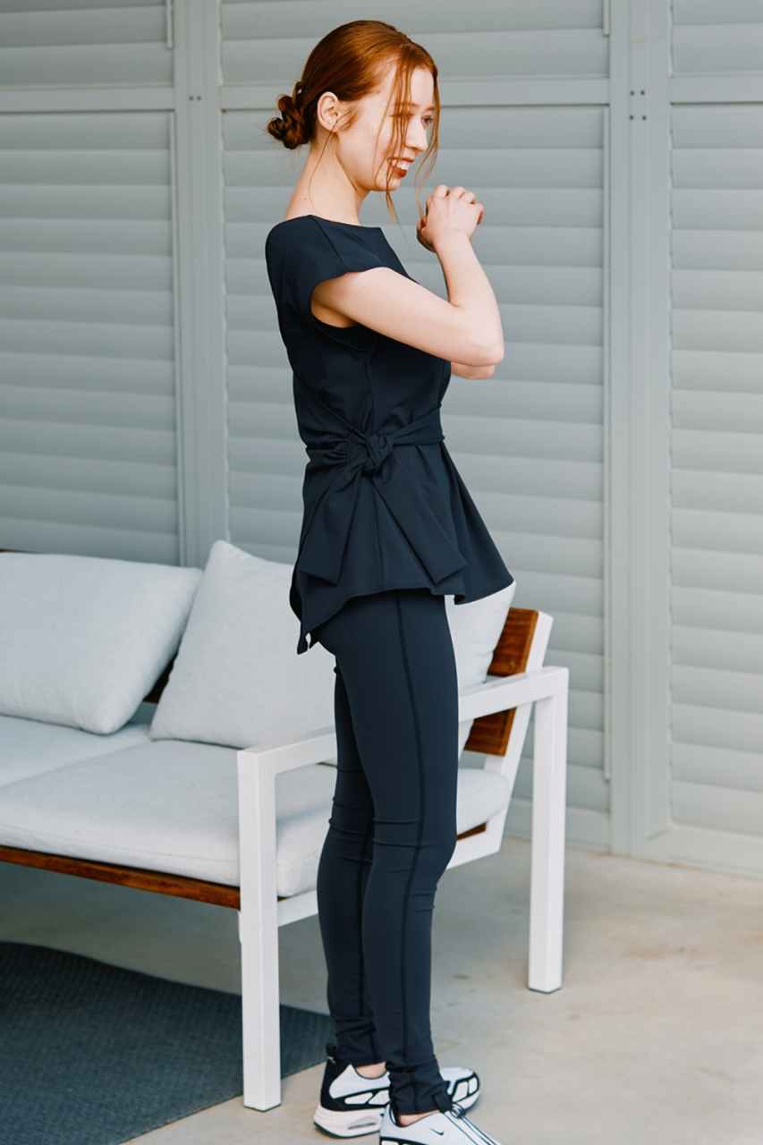 セットのTシャツはウエストリボンで女性らしさを添え、前後2WAYで着用可能。