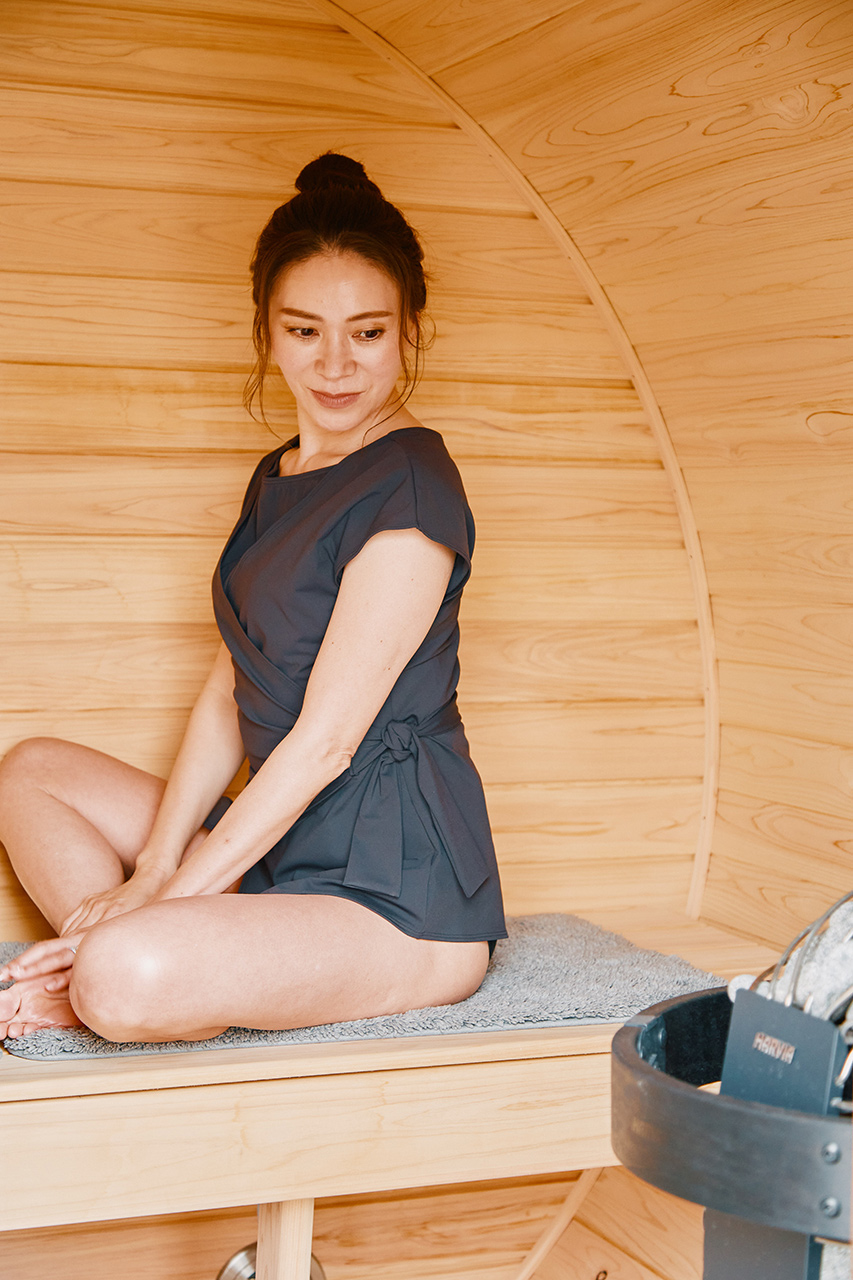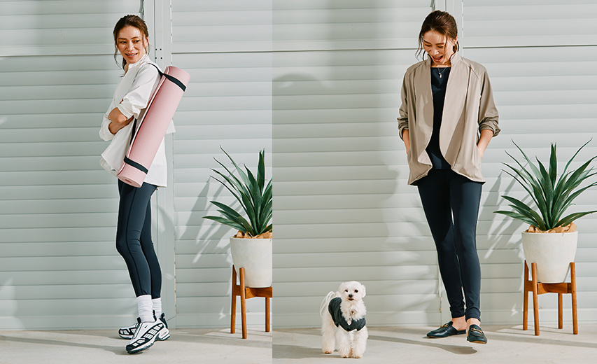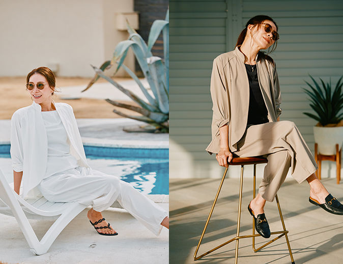 パーソナルスタイリスト・大日方久美子さんと「レイール」のコラボレーションによる、水陸両用のイージージャケットとロングパンツ。