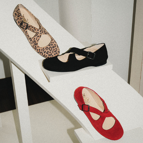 甘さとモードの境界を横切る、シーズン映えフラット。