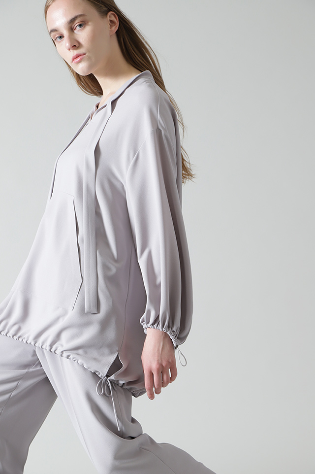 しなやかでドレープ性に富んだ薄地のジョーゼット生地で仕立てたブラウス。パーカーライクなデザインをきれいめに仕上げたユニークなルックスは、大人のこなれたラフスタイルにぴったり。シンプルなボトムスを合わせるだけでコーディネートが決まるから、ワードローブに加えてみて。リボンを結んで、かわいらしいアクセントを効かせるのもよさそう。