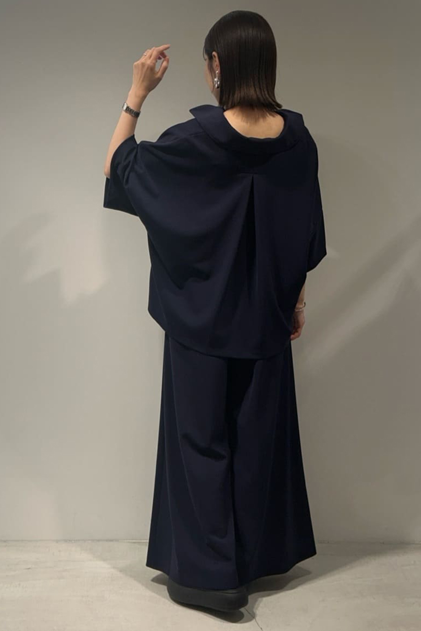 程よい厚みのジャージ素材でできたプルオーバーです。襟を抜いて着用すると抜け感のある印象に◎オーバーサイズですがショート丈なので、ワイドパンツやタイトスカートなどどんなボトムとも相性が良く汎用性の高いアイテムです。同素材パンツとセットアップでの着用もお勧めです。