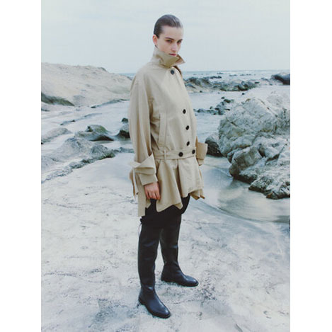 羽織るだけで旬のスタイルが完成するテーラードとブルゾンを掛け合わせた、モード感漂うデザインジャケット。オーバーサイズシルエットに加え、低めの切り替え位置から広がるハンカチーフヘムのペプラムが、動きと立体感を演出。ベルトの後ろ側についているバックルでシルエット調整が可能。ナイロンとコットンを高密度に交織したグログラン素材は、程よいハリ感があり、構築的なフォルムを美しく保ってくれそう。