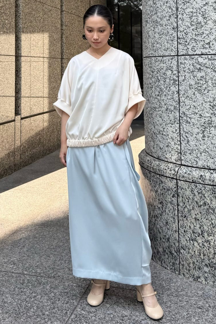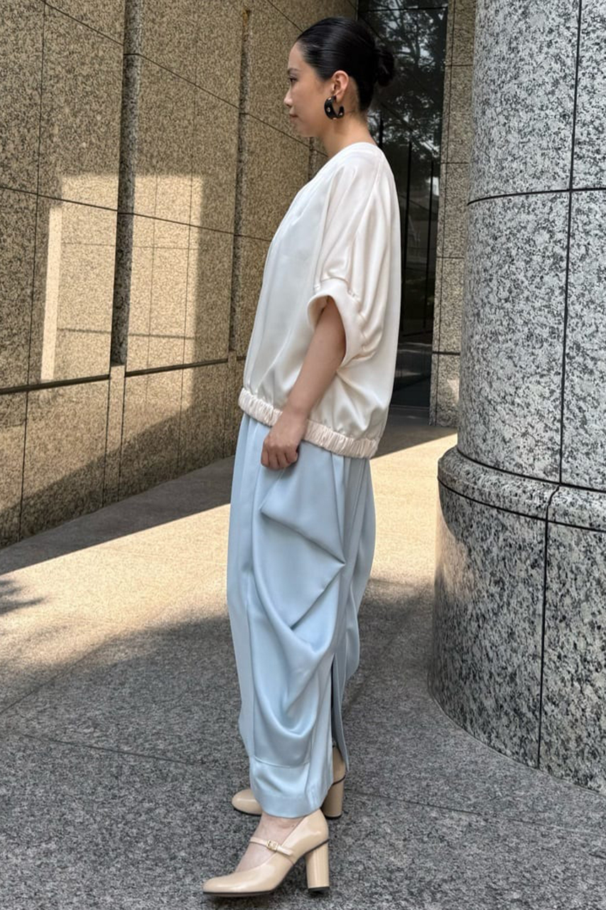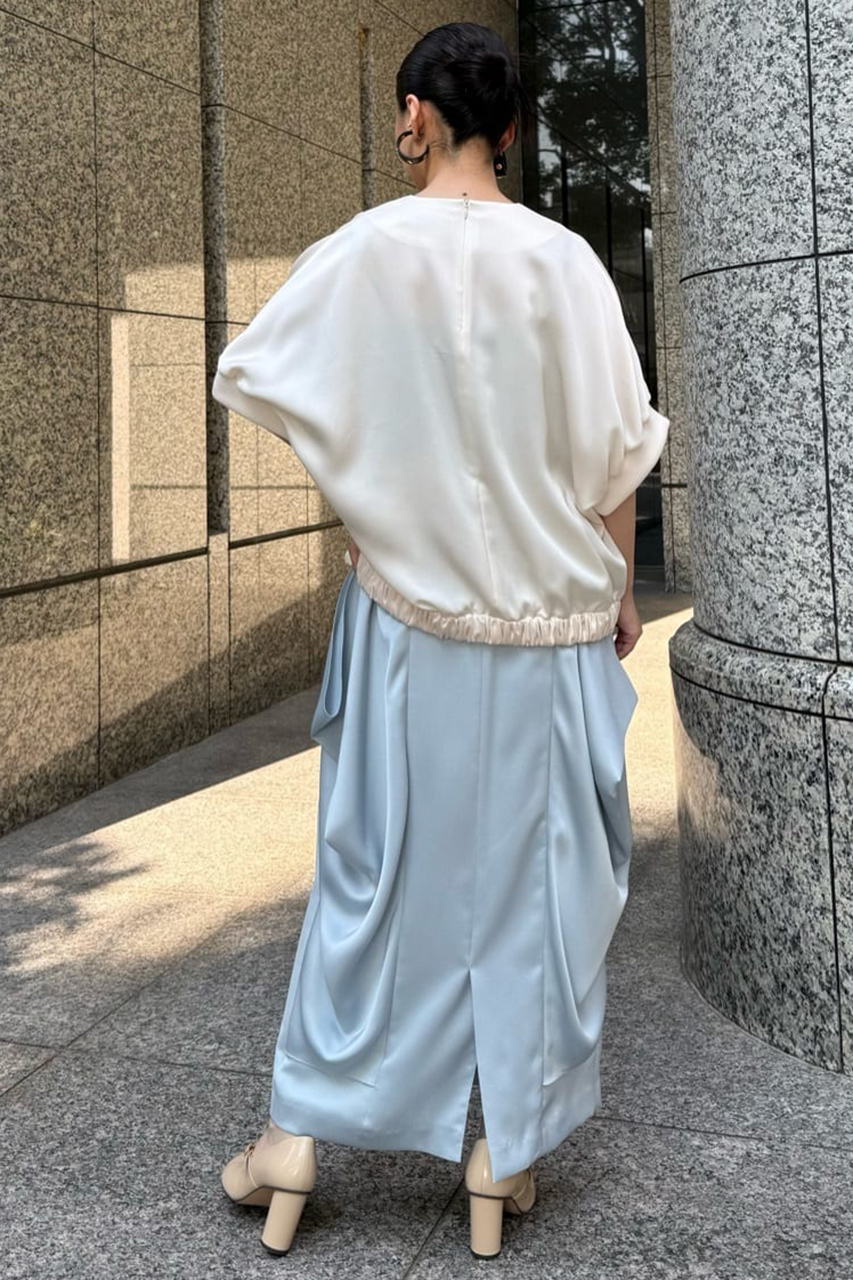 しなやかに魅せる、サテン素材でとろみ感のある上品なサテン素材で女性らしさをプラス。