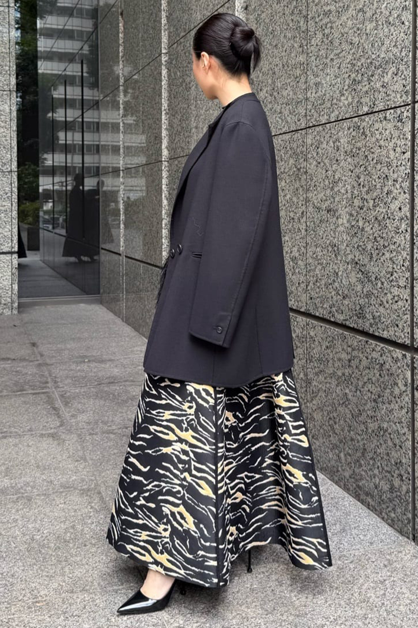 同素材のスカートと合わせると女性らしいスタイルが完成し、羽織るだけでコーディネートを引き立ててくれる一着です。