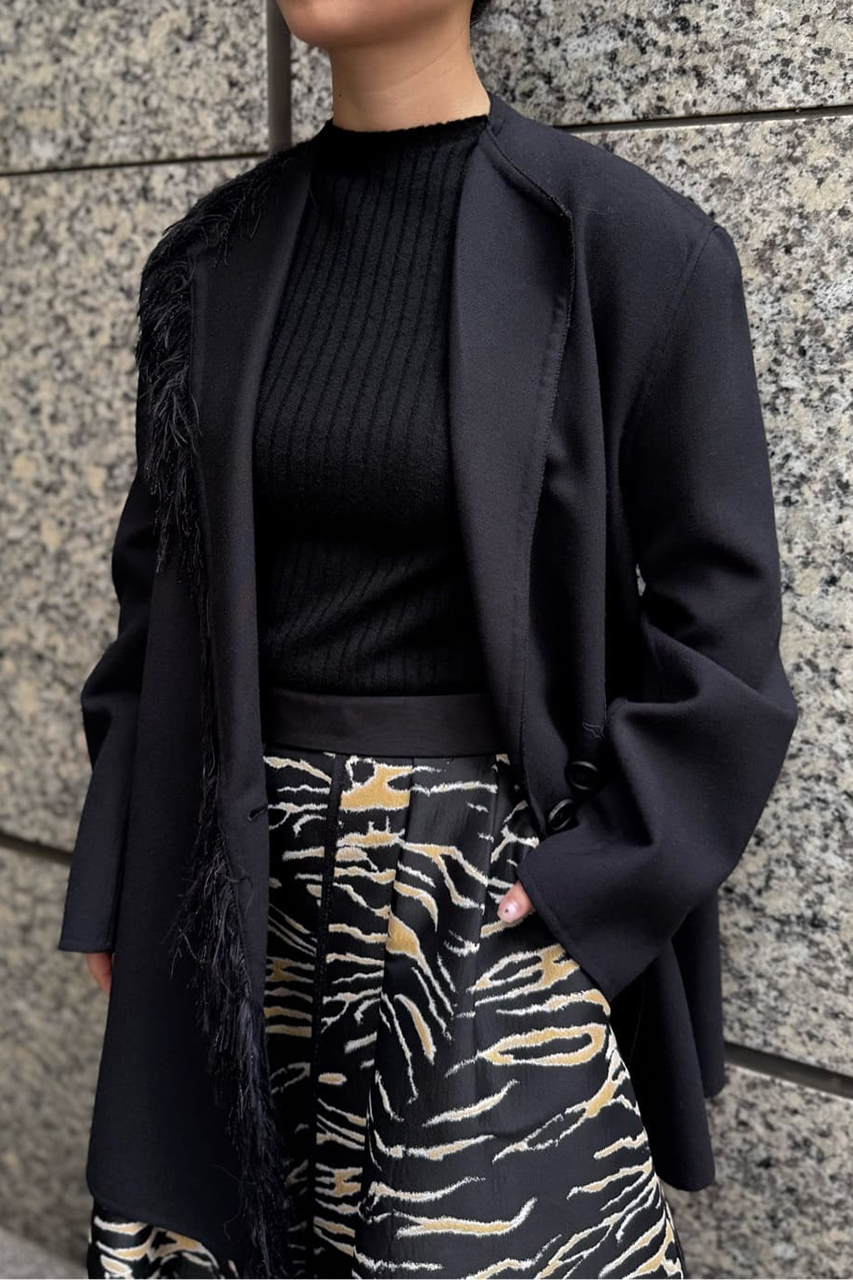 フリンジ使いが印象的なコンパクトウールリバージャケット。