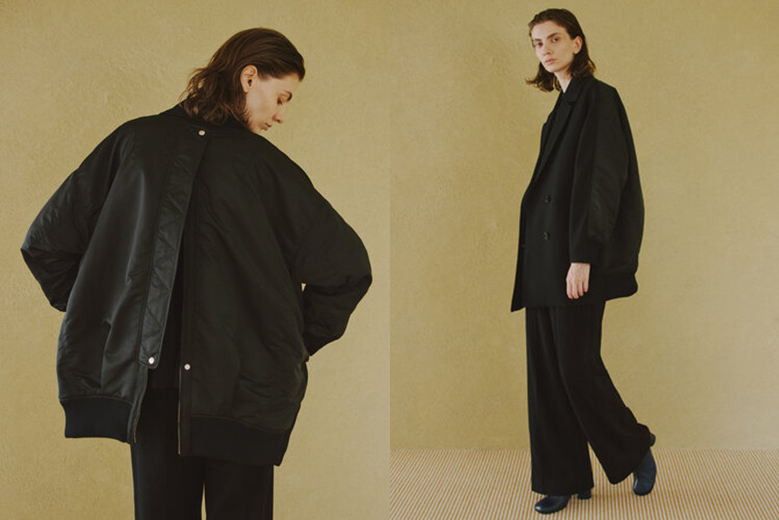 厚みのある合繊素材と軽やかなタフタを組み合わせたデザインジャケット。ややコクーン型のシルエットで、ダブルジャケットとブルゾンの要素を融合させたモードな一枚。裏地には中綿入りのキルティングを施し、保温性と立体感をプラス。スポンディッシュな反発感を持つ三重組織の合繊素材と、高密度ながら柔らかく艶のあるタフタが調和し、存在感ある佇まいに。