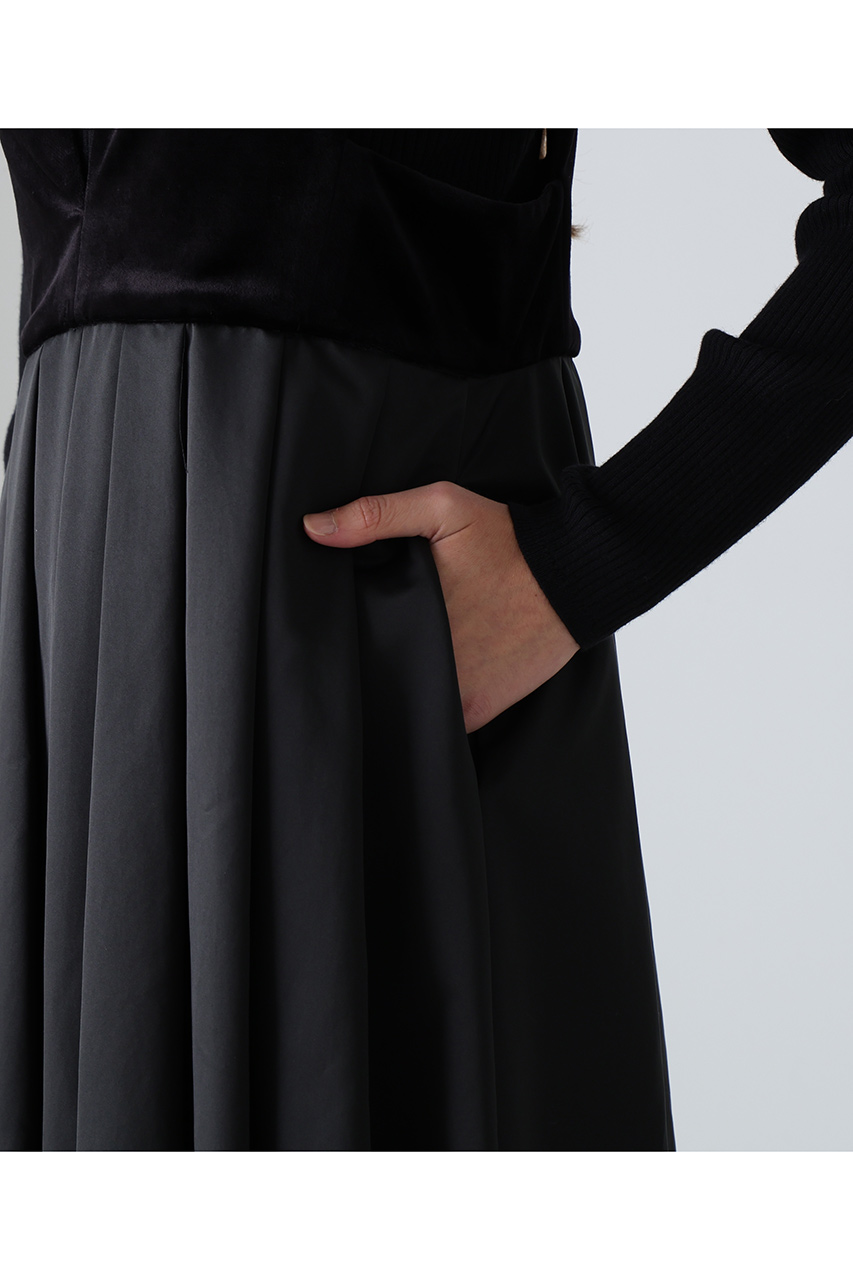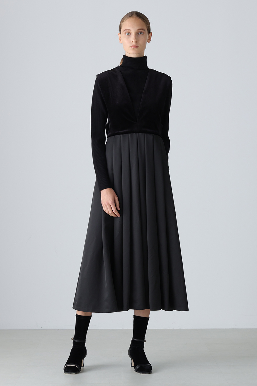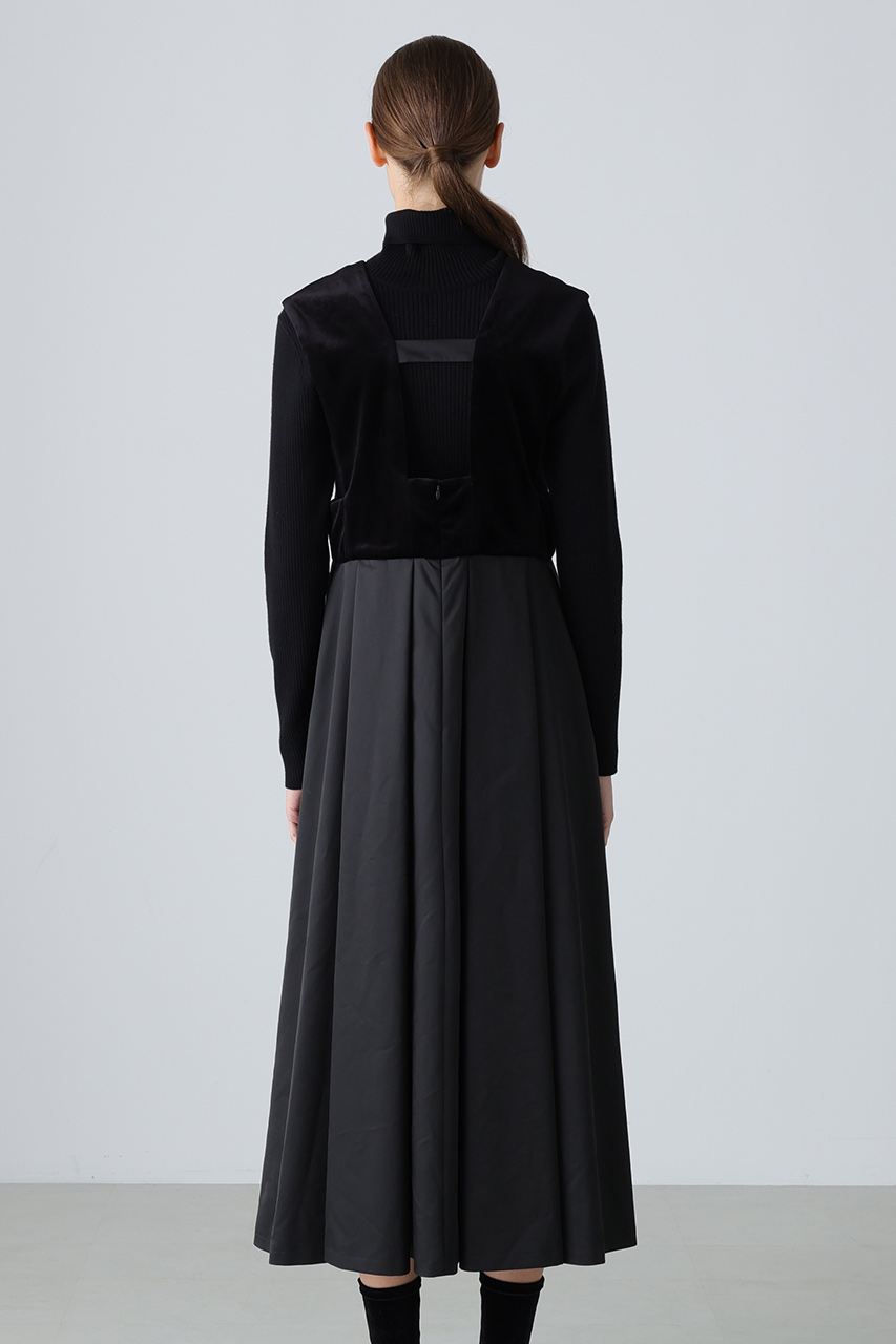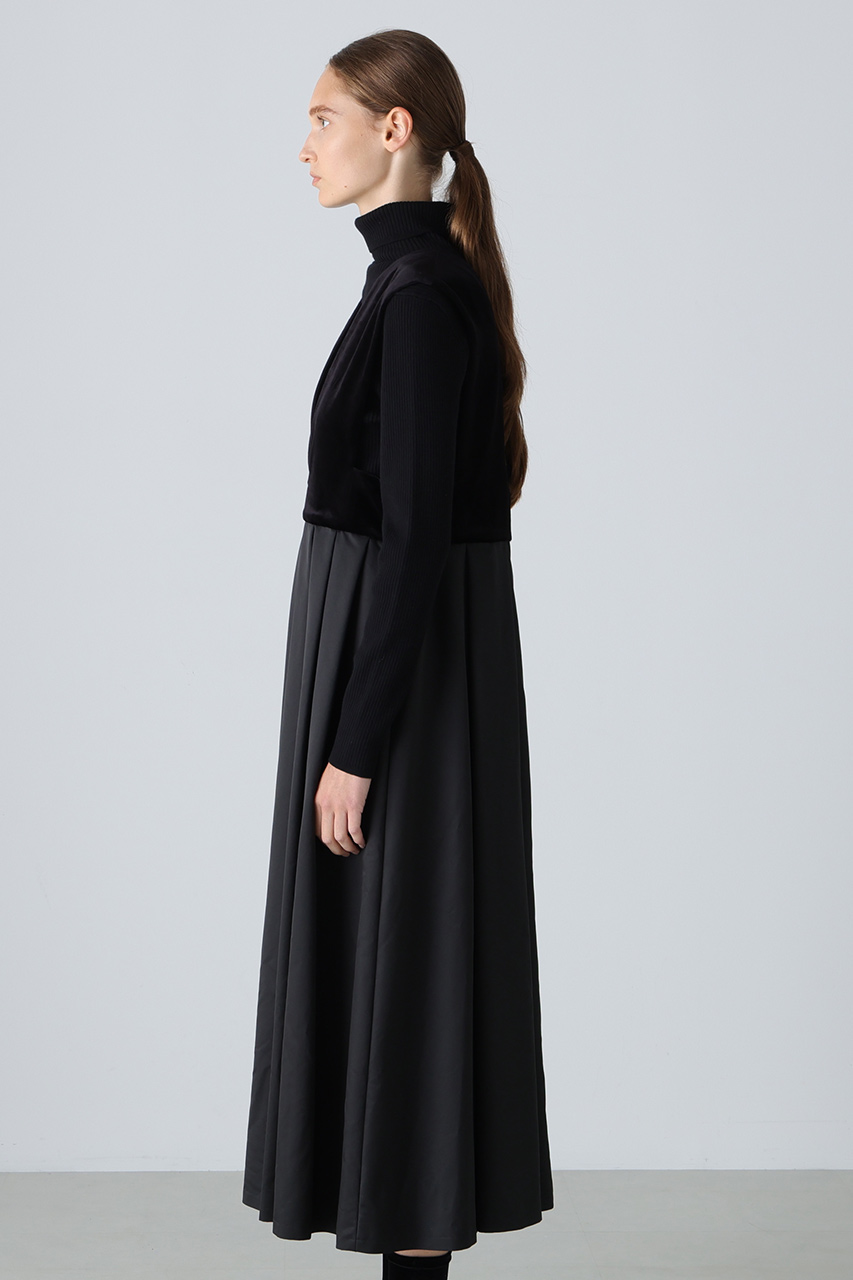 ハリのあるタフタ素材とベロア素材を使用したコンビドレスです。