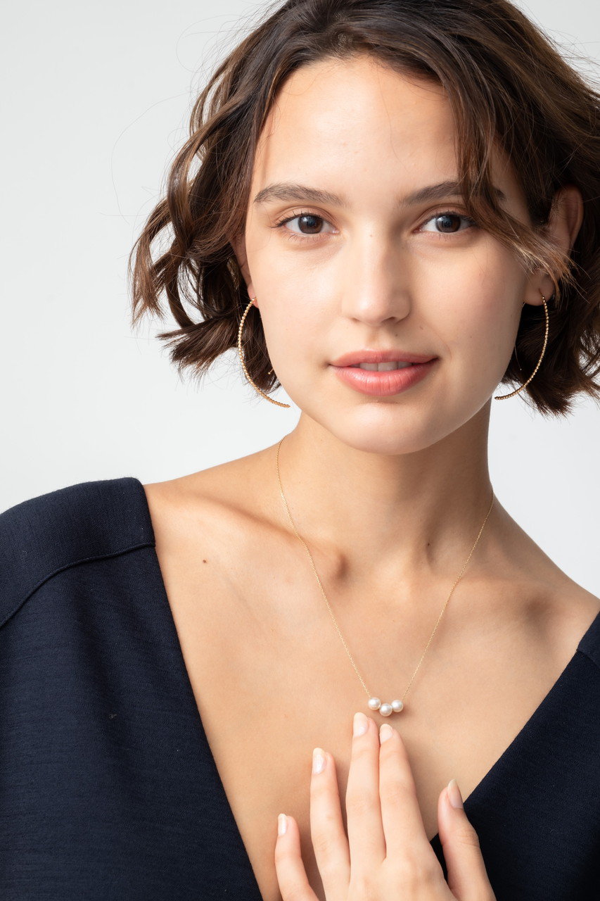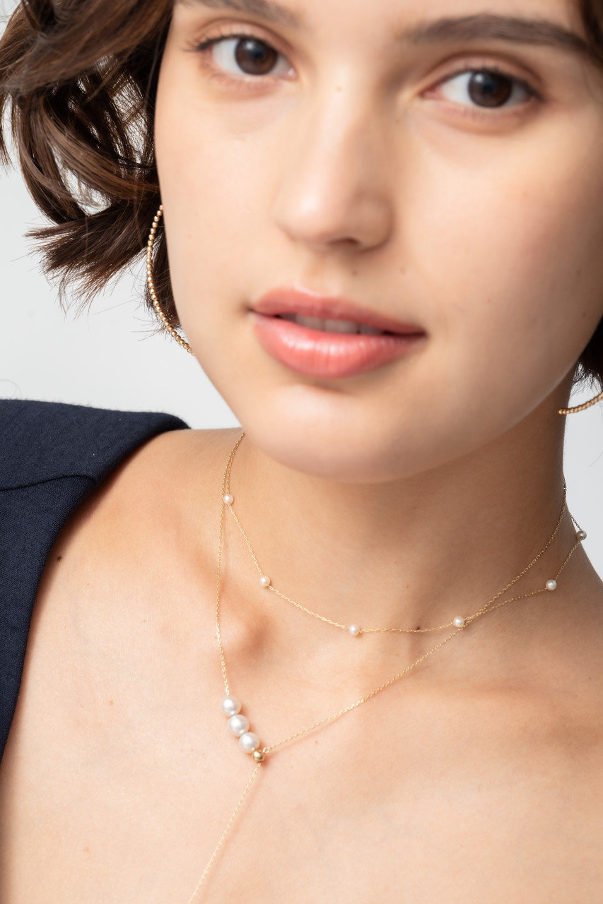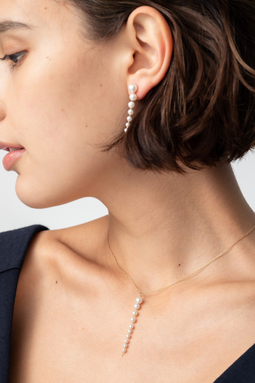 シンプルでありながら存在感のあるフローティングパールネックレスは、どんなスタイルにもマッチし、胸元へ洗練された雰囲気をプラス。ホリデーギフトにふさわしい、「ミズキ」の定番ネックレスです。