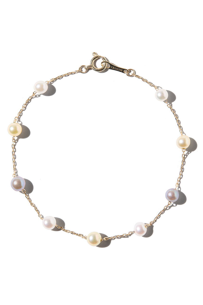 「ミズキ」の人気デザイン“フローティングパール”シリーズに、3色のアコヤパールが散りばめられたネックレスとブレスレットがラインナップ。素肌の上で輝く、カラーグラデーションがさりげなくも奥行きのある表情を生み出します。